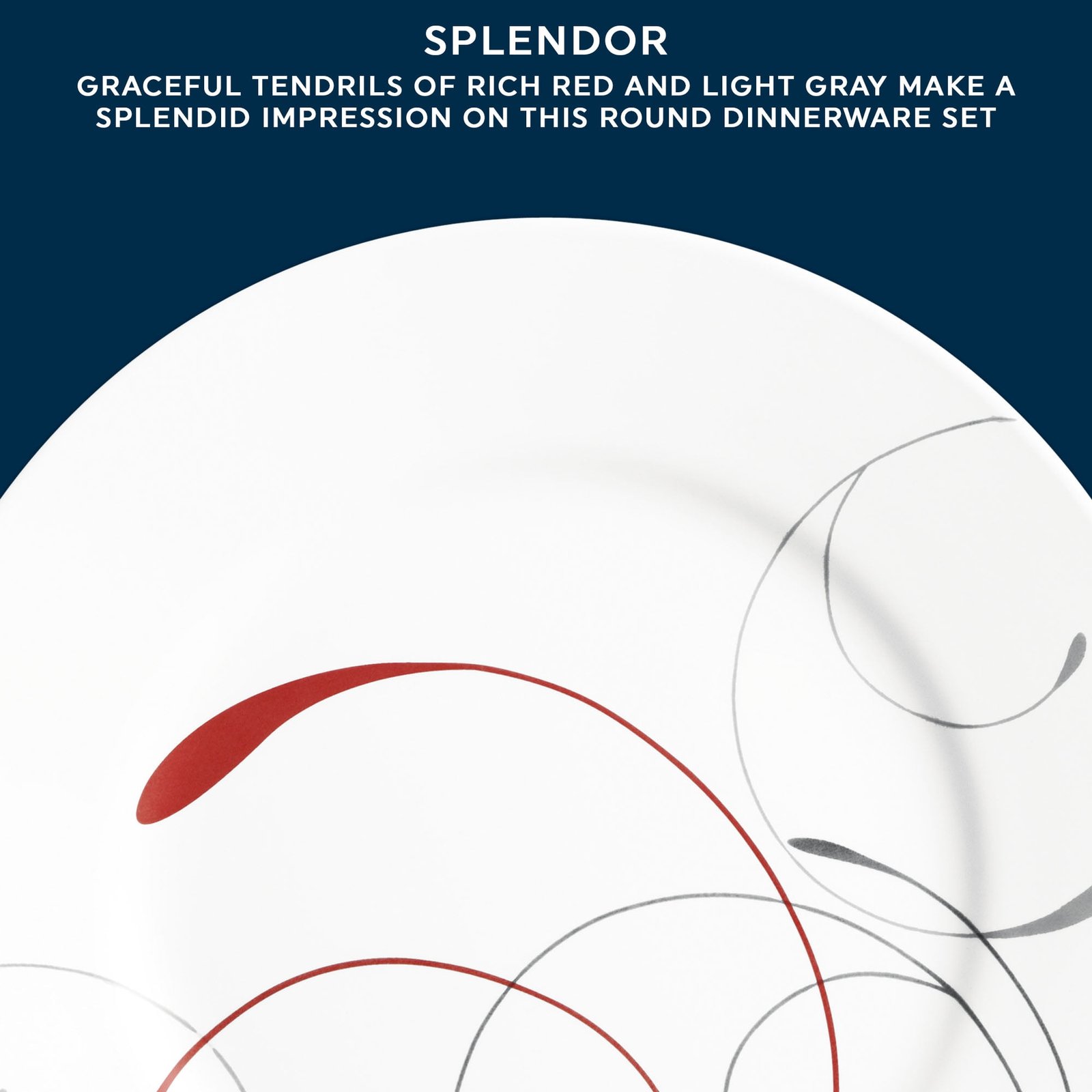 - UNIQUE PATTERNS: Graceful tendrils of dark red and light gray make a splendid impression on this square dinnerware set