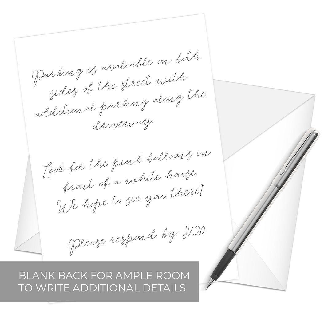 - Includes: 25 invitations and white envelopes.