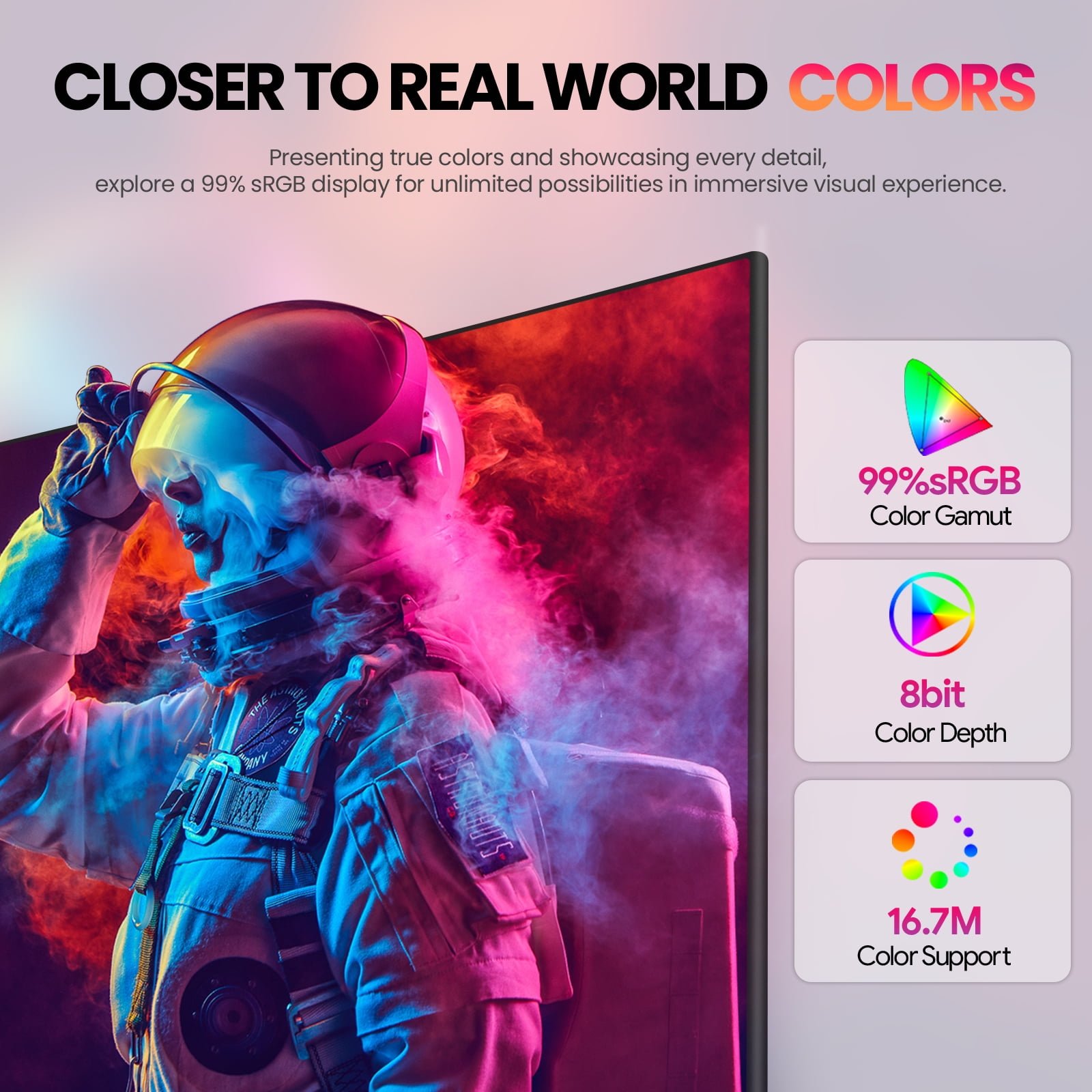 ⚡ Smooth Visuals: This 24-inch curved monitor features a 75Hz refresh rate and 1080p Full HD resolution, delivering crisp images with a 5ms response time. Ideal for seamless multitasking and immersive gaming.🌈Vibrant Colors: With a 99% wide color gamut and 3000:1 contrast ratio, this monitor ensures rich, vibrant colors for enhanced visual quality and stunning displays.🎮Enhanced Connectivity: Equipped with HDMI 1.4, VGA and AMD FreeSync technology, this monitor offers broad compatibility with a variety of devices. Easily create multi-display setups for increased productivity and entertaining experiences.📒Adjustable Viewing Comfort: With tilt adjustment from -5° to 15° and a sleek white design, this monitor adds style to any workspace while providing ergonomic comfort for extended use.⭐Comprehensive Package: Includes monitor, HDMI 1.4 cable, user manual, power adapter and wall mounting screws – everything you need for quick setup and seamless integration into your environment.