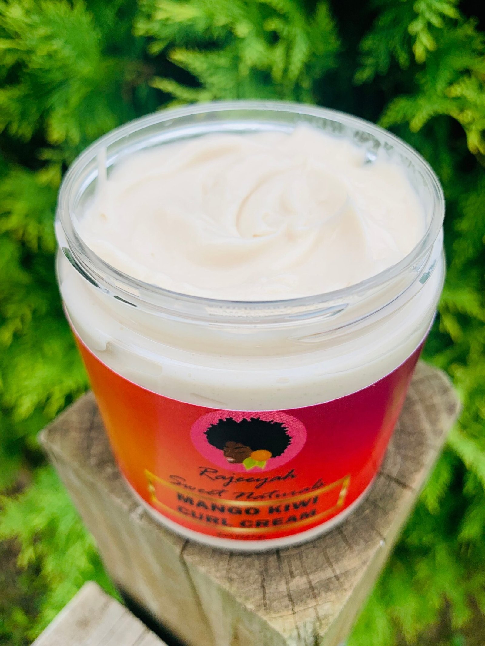 Dry Twistout: Lightly spray hair with water. Apply Mango Kiwi Curl Cream to sections. Style as desired.