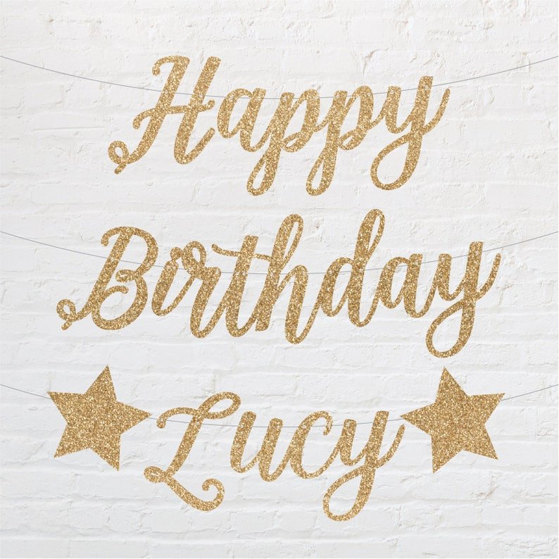 Custom Cursive Gold Glitter Banner Personalized Script Glitter Sign Custom Name Custom Birthday Custom Bridal Shower Bunting Silver