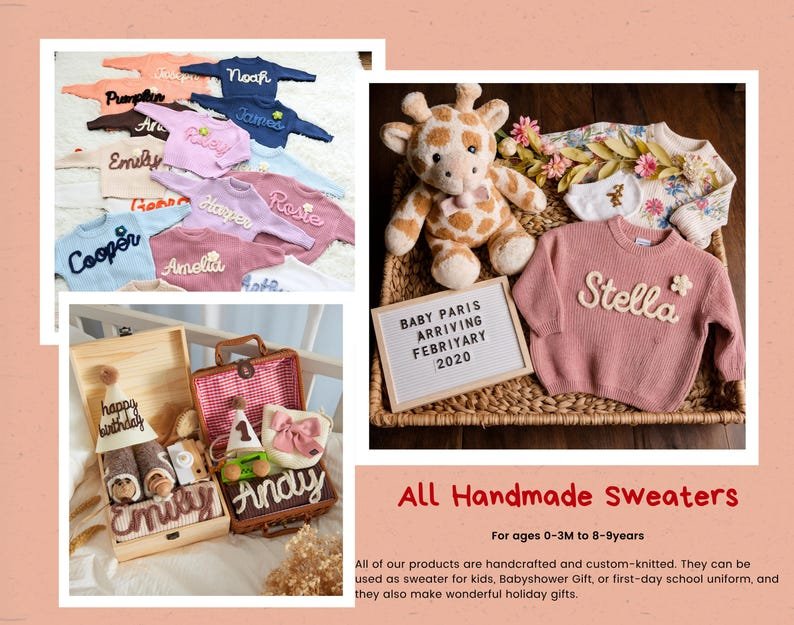 Custom Embroidered Baby Name Sweater: Personalized Knit Crochet Gift, Baby Name Sweater, Knit Sweater,Personalized Gift, Christmas sweater