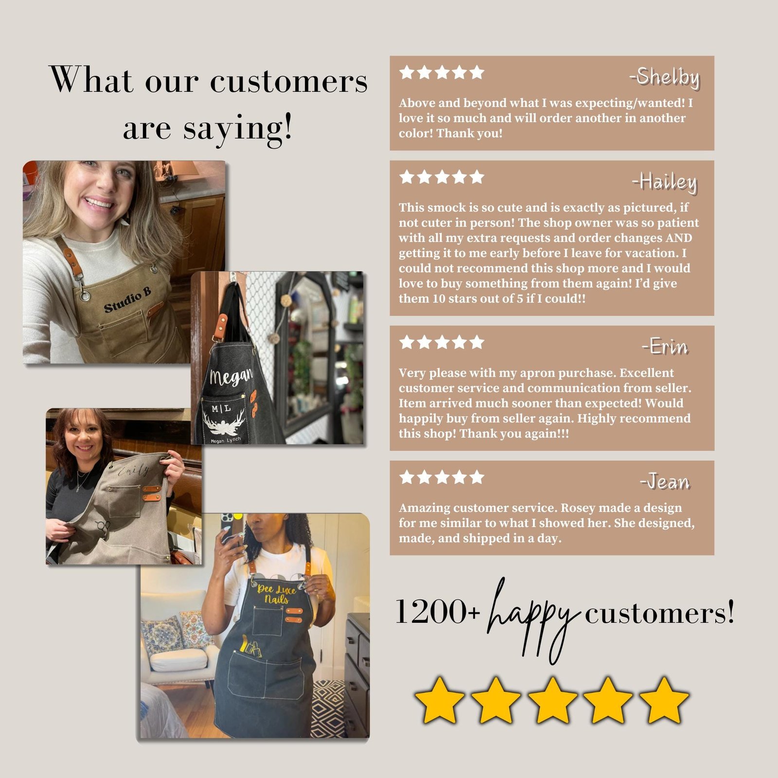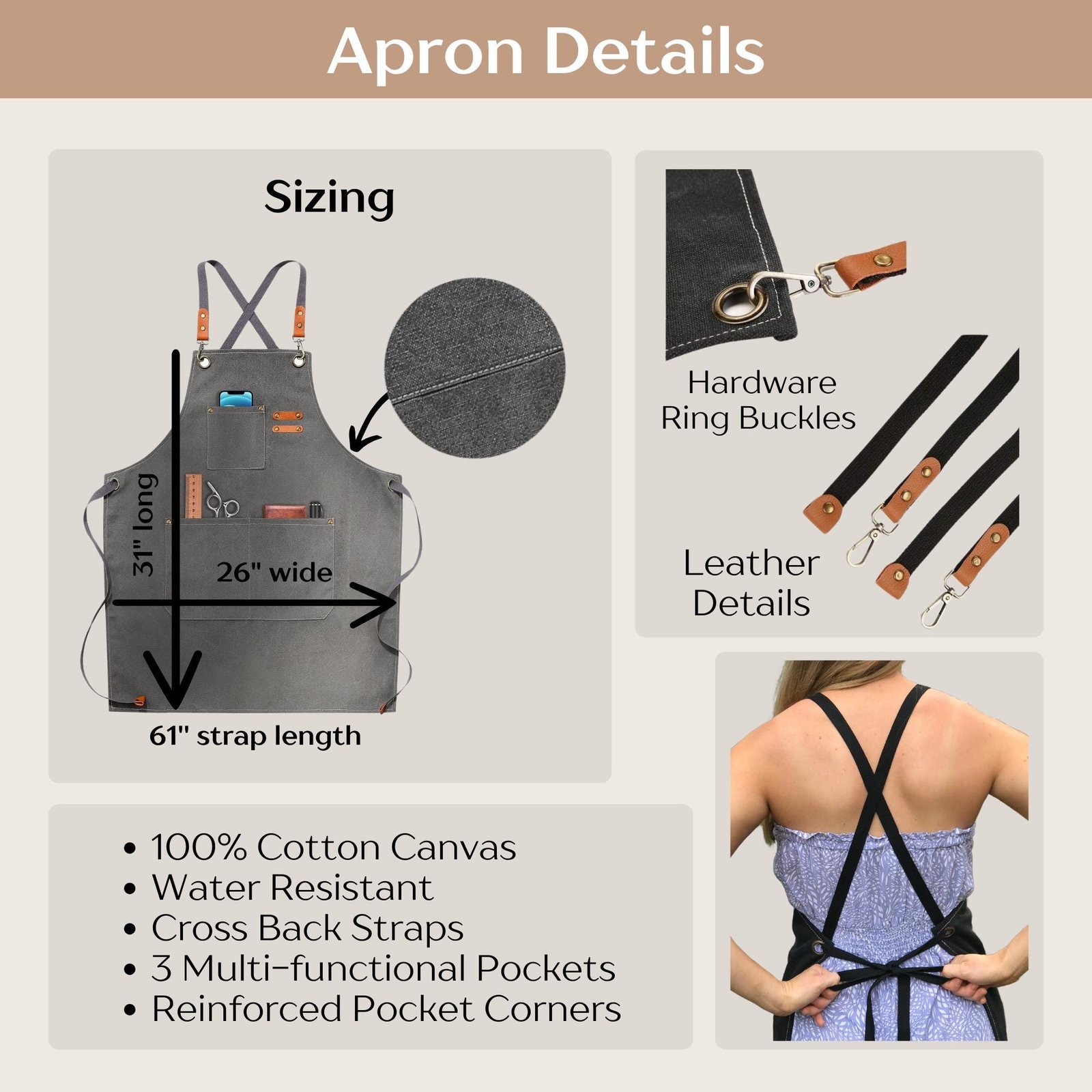 ✔️ Straps: No neck pain! Our cross back apron straps are adjustable to give you an XS to plus size apron.