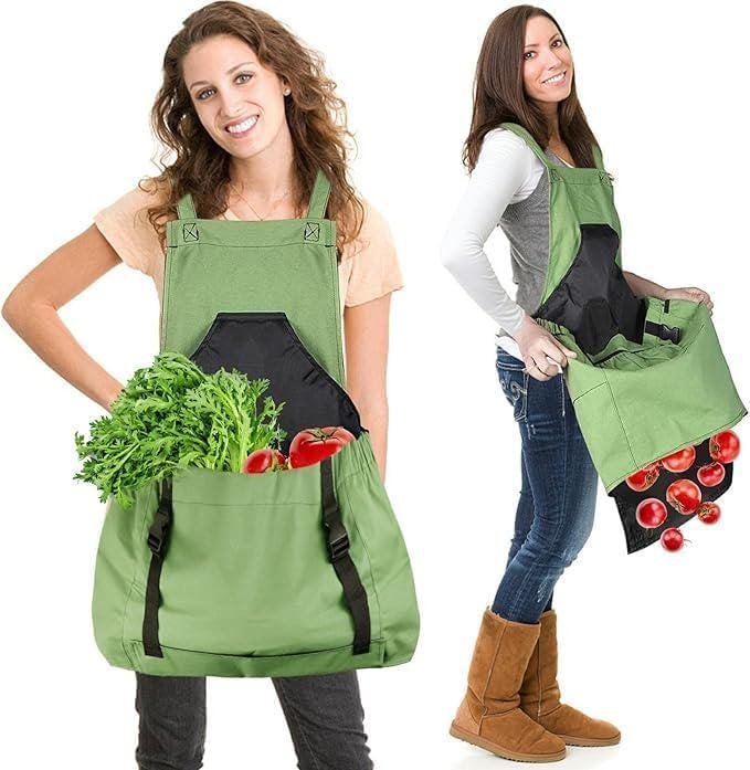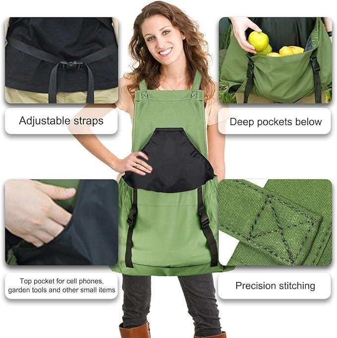 This is a custom multi-pocket large capacity gardening apron, cotton. The green color is the same as in the final stitched product photo.