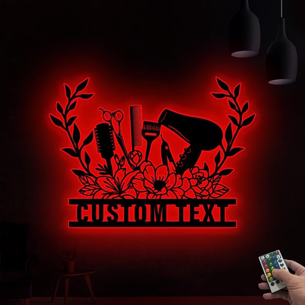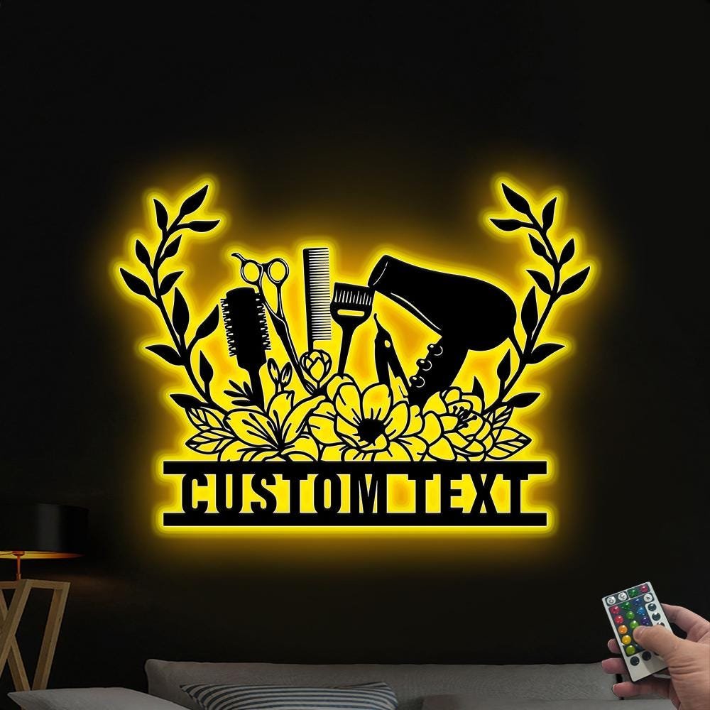 Custom Hair Salon Wall Art with Led Lights, Personalized Hair Salon Name Sign, Beauty Salon Decor, Salon Wall, Salon Sign, Hairstylist Gift