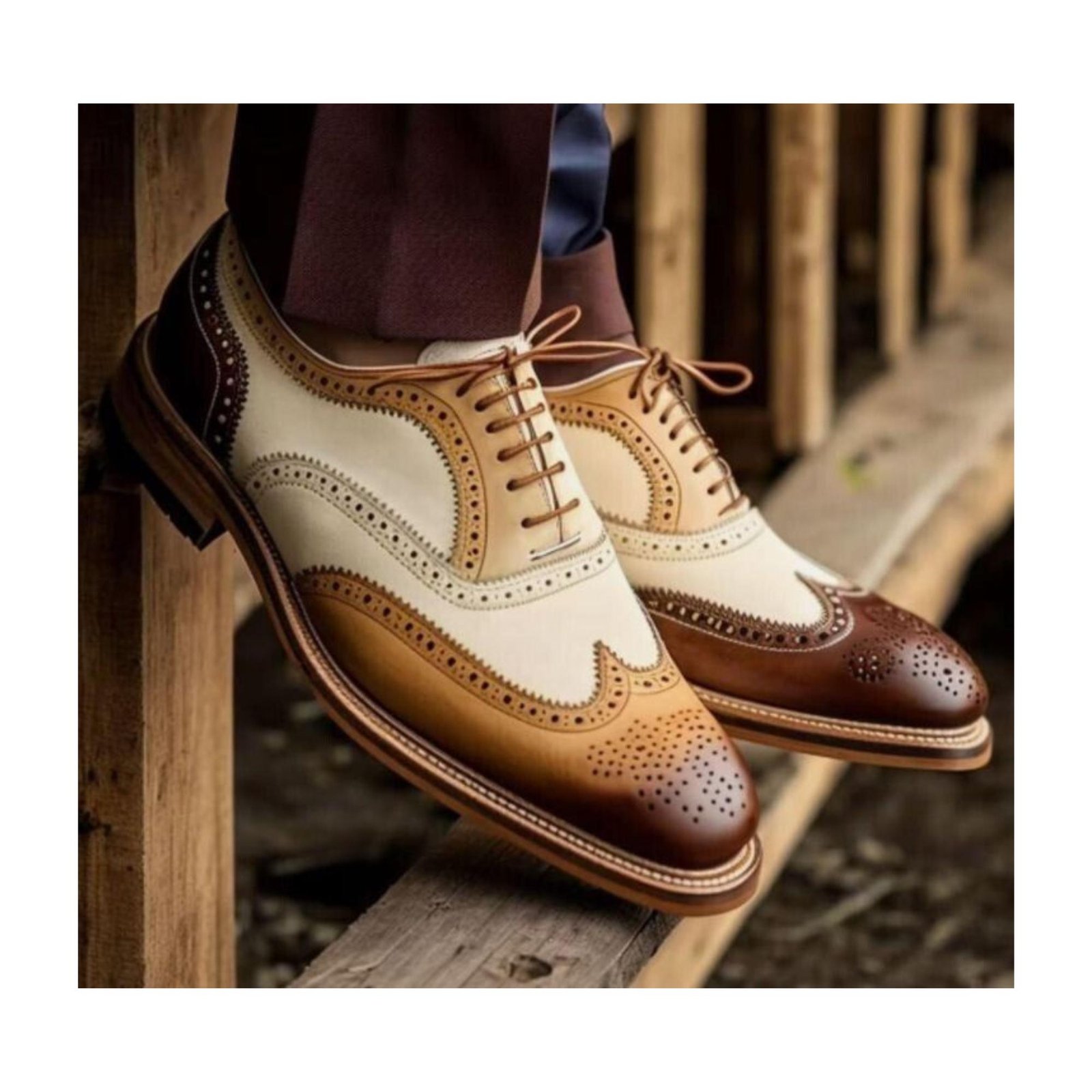 Custom Handmade Three-Tone Leather Wingtip Brogue Dress Shoes