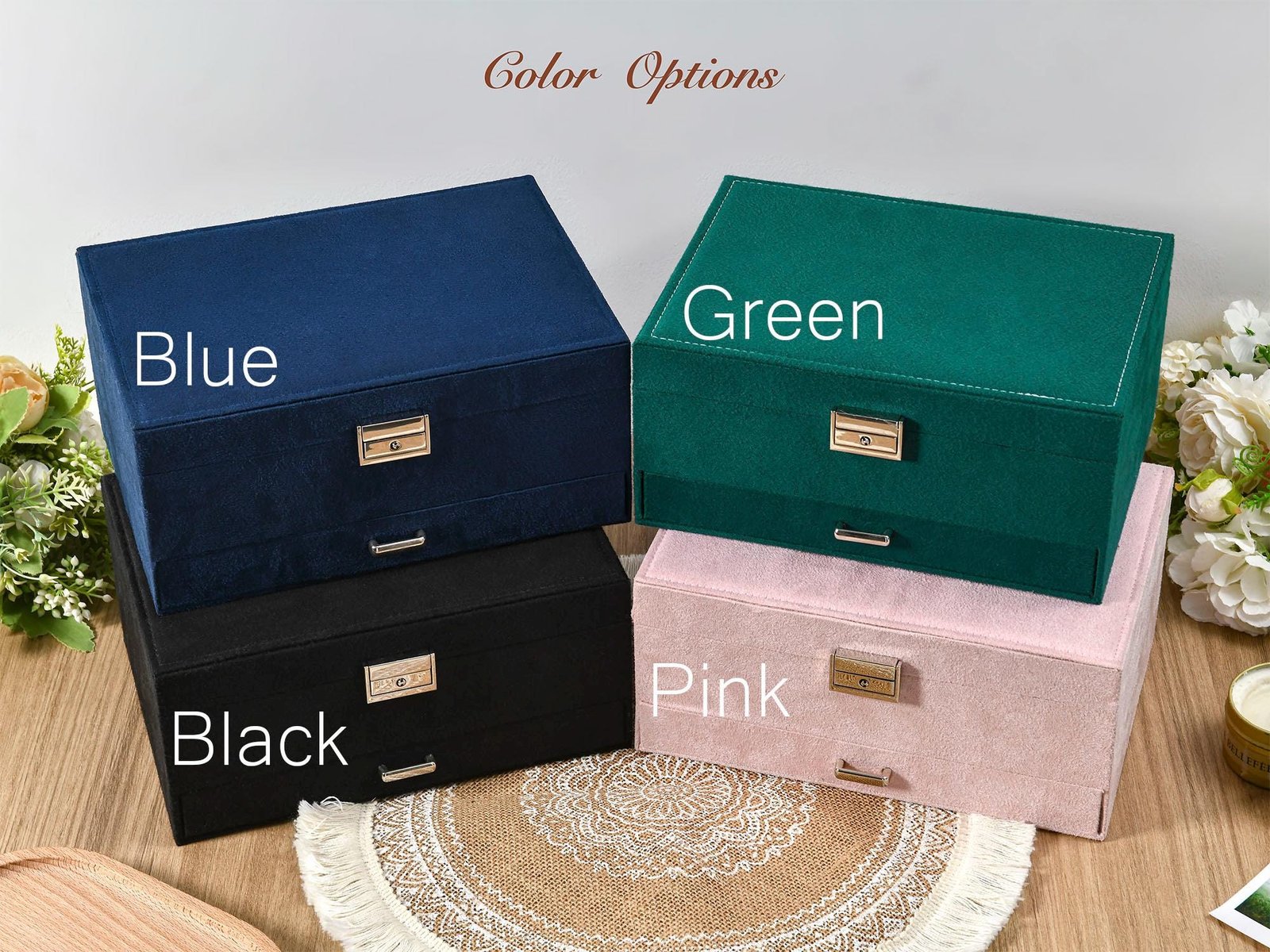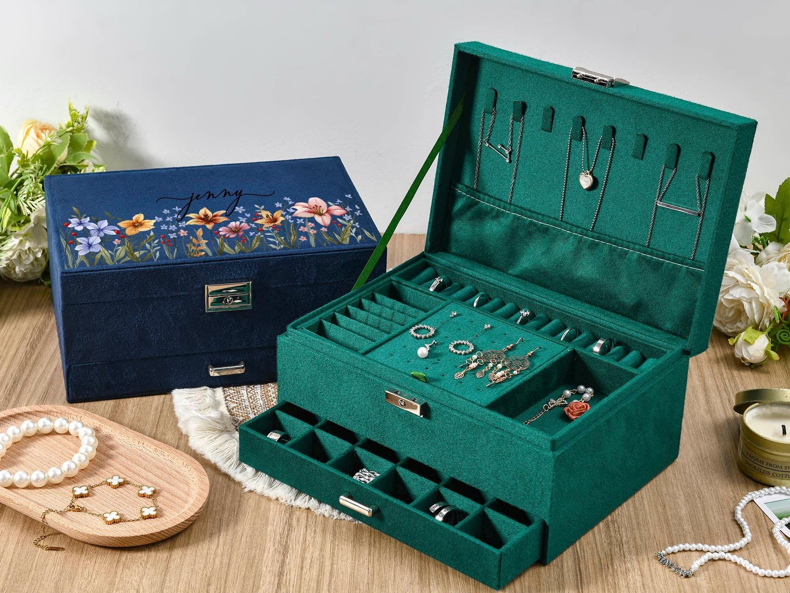 Custom Large Velvet Jewelry Box,Velvet Jewelry Box with Drawer for Women,Jewelry Storage Box with Name,Flower Jewelry Box,Gift for Her