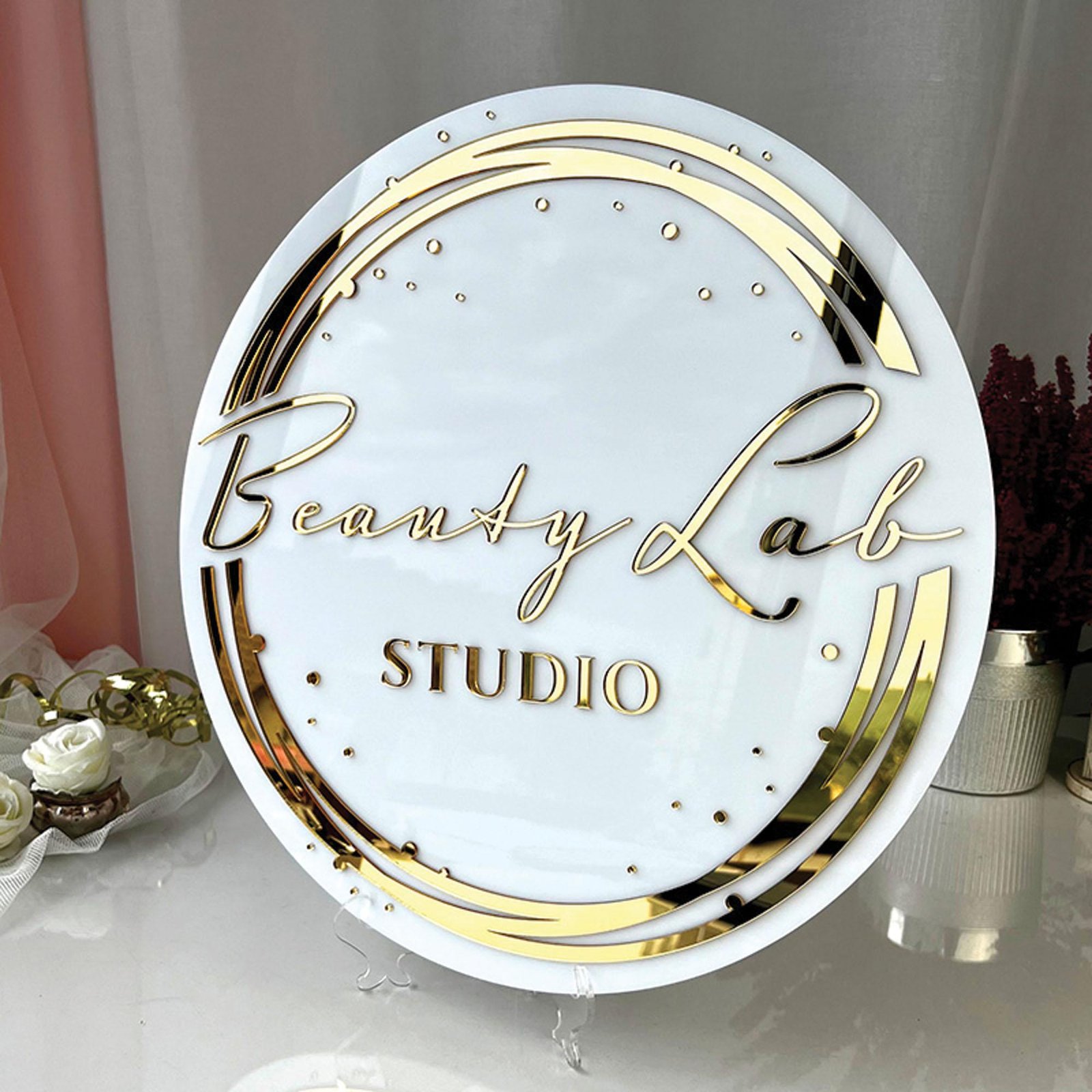 Custom Salon Signs ,Personalized Studio Signs ,3D Printed Sign .Round Acrylic Sign, Acrylic Logo Sign ,Boutique Sign ,Flower Bar Sign