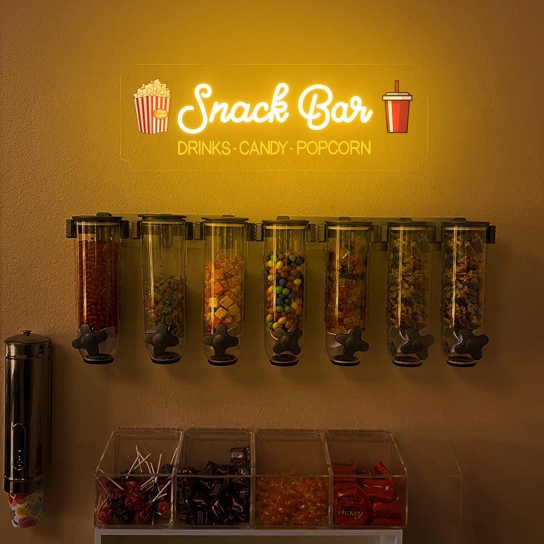 Custom Snack Bar Neon Sign, For Gourmet Shop Decor ,Fast food coffee shop decoration, Cinema Food Light , Kitchen Decor ,Popcorn Neon Logo