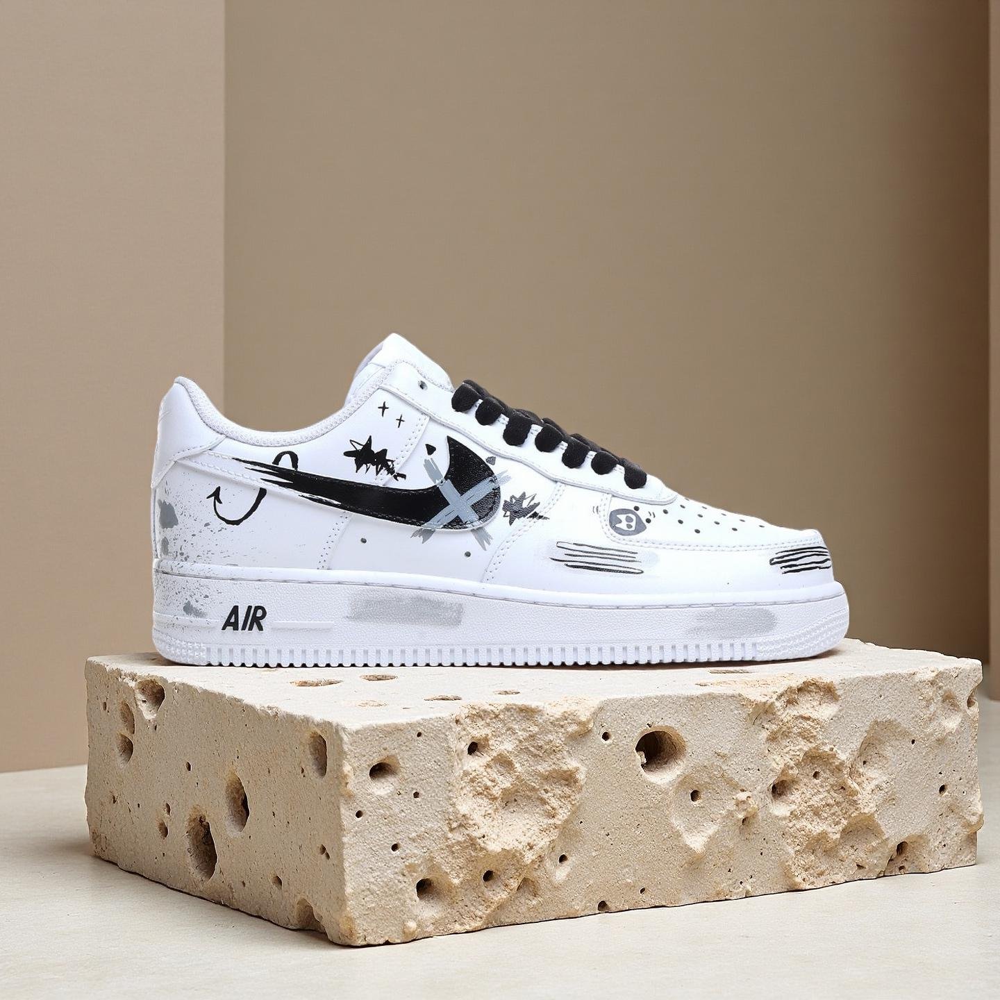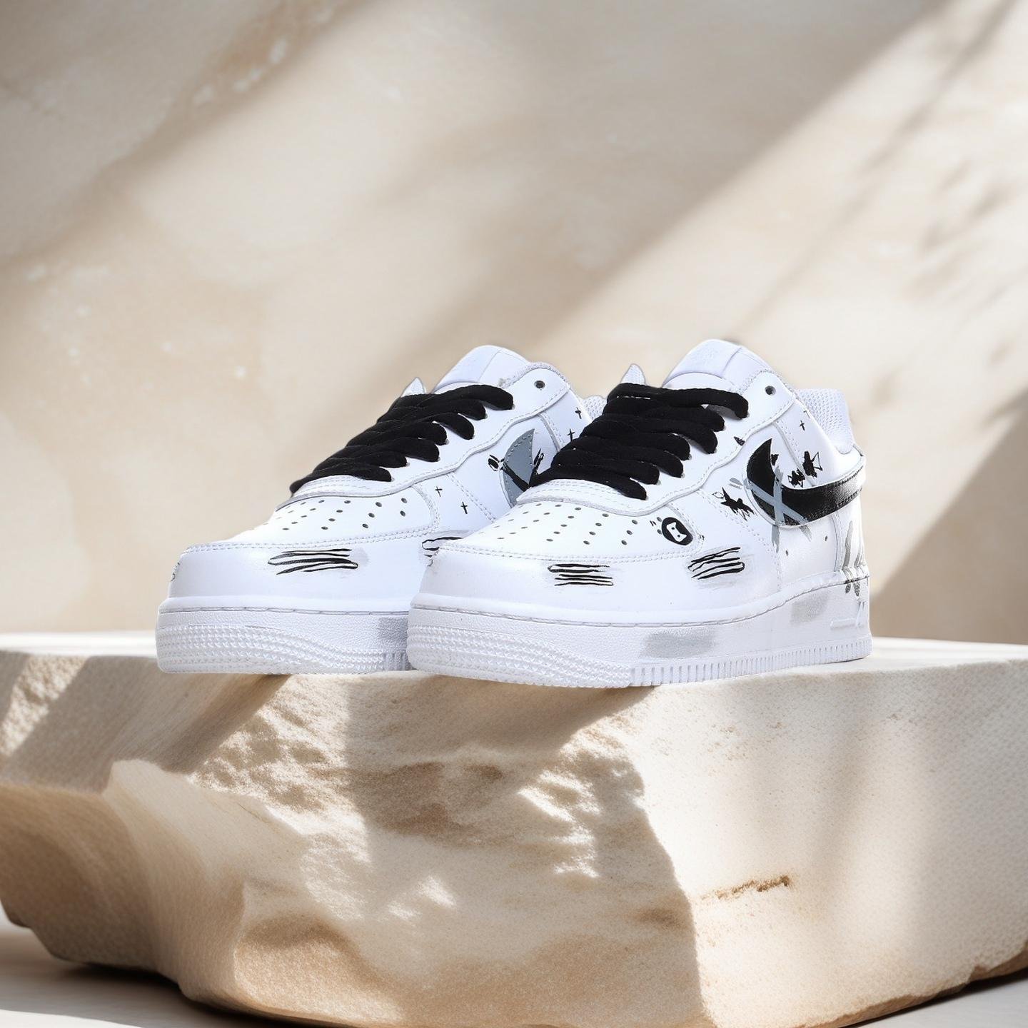 Custom Vintage Black And White Nike Air Force 1 | Hand Distressed Sneakers | Alphabet Graffiti Sneaker | Unique Personalized Gift for Him