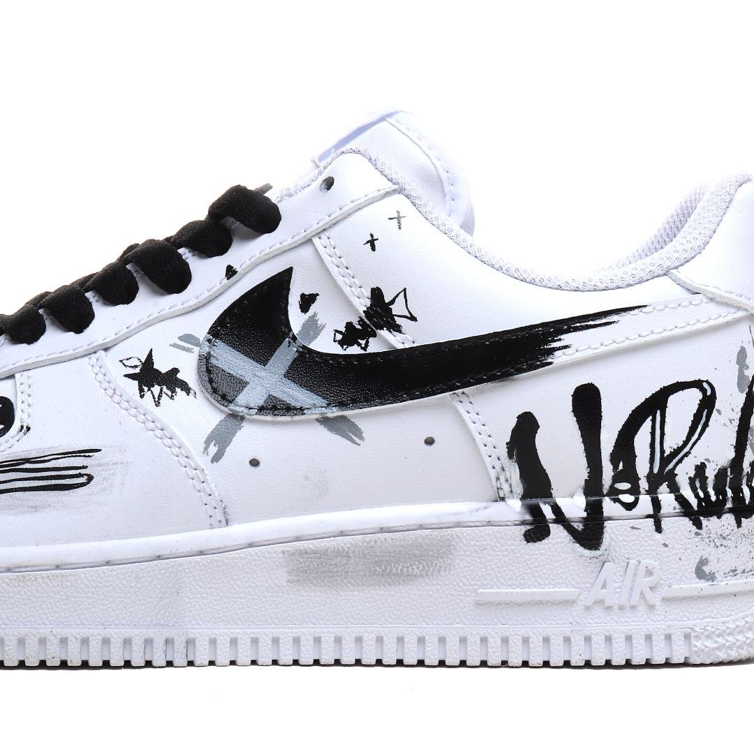 Custom Vintage Black And White Nike Air Force 1 | Hand Distressed Sneakers | Alphabet Graffiti Sneaker | Unique Personalized Gift for Him