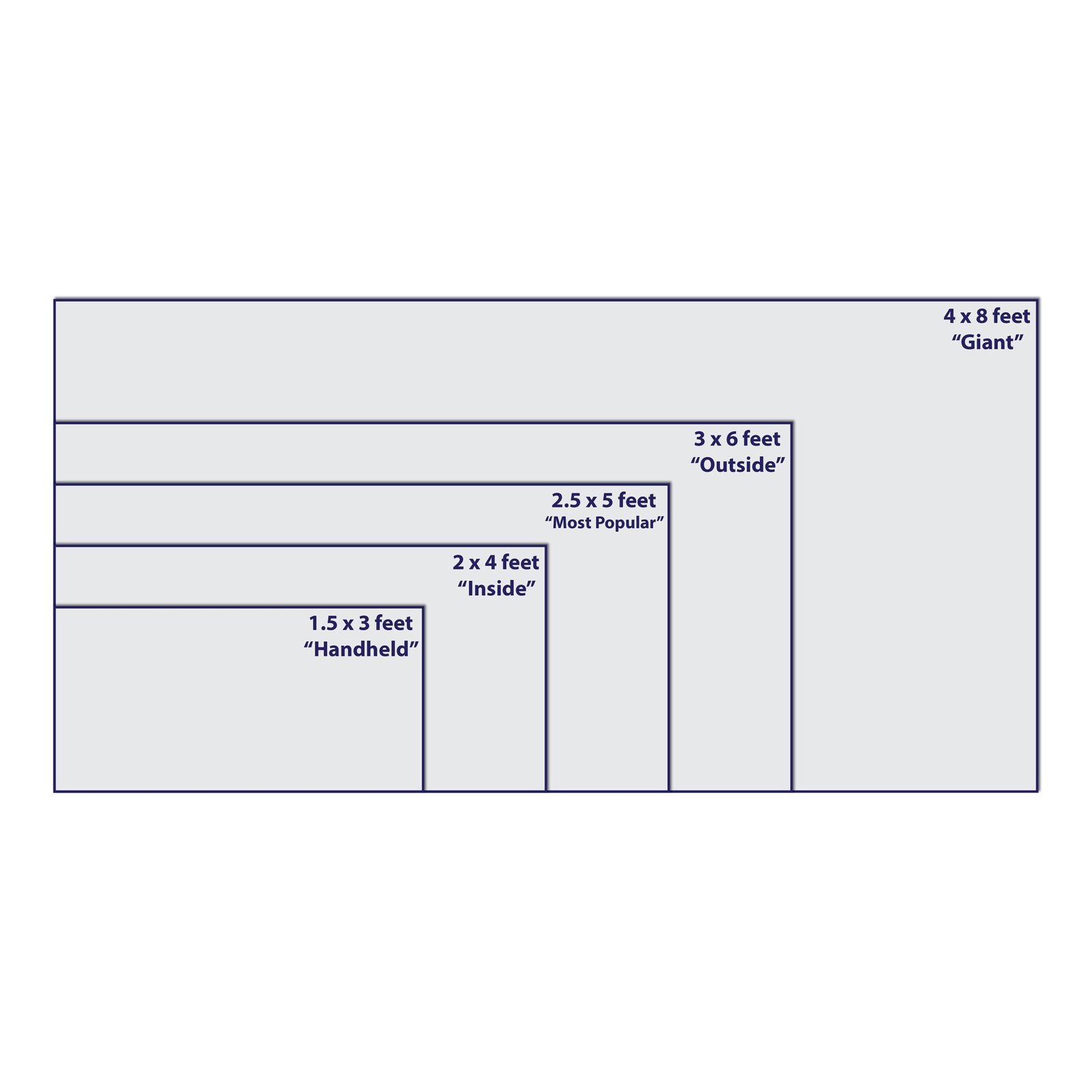 1.5 x 3 feet ,2 x 4 feet ,2.5 x 5 feet ,3 x 6 feet ,4 x 8 feet |