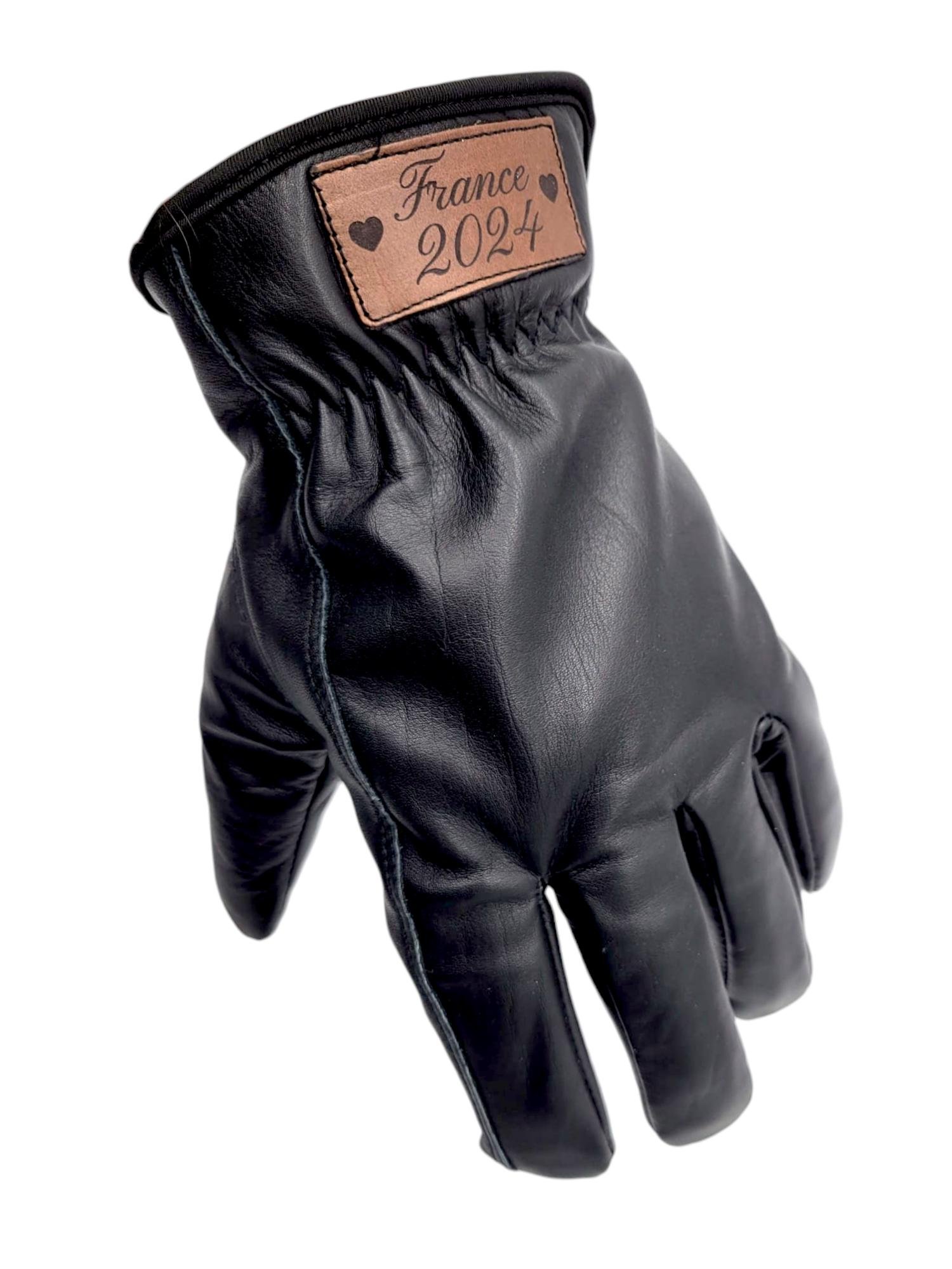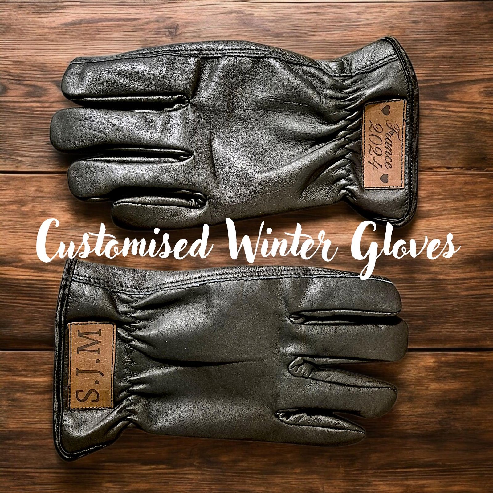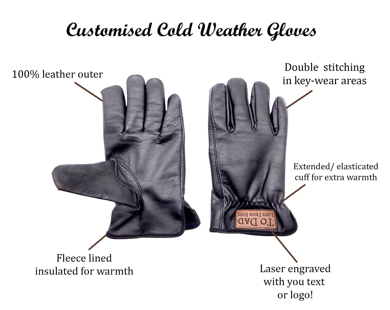 Customised Black Leather Thermal Gloves, Winter cold weather Driving Gloves