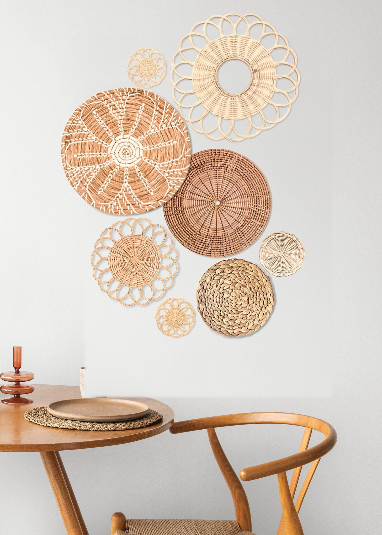 Customizable Rattan Wall Basket – Boho Wall Decoration in Natural Fiber