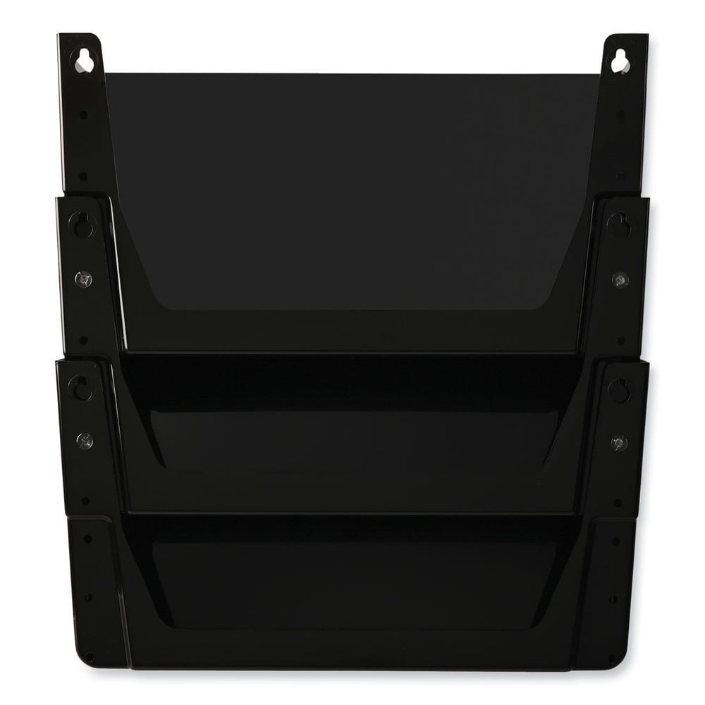 An essential tool for every office or cubicle, this attractive three-pocket filing system moves papers off the desk, creates extra space and organizes your office. Its waterfall design provides visibility to many files at one time. Each pocket connects to one another with the included EZ Link linking pins, and attaches to the adjustable partition brackets with hardware provided. Each pocket accommodates letter-size documents and files and is great for large workloads. Durable construction for long-lasting use. Partition brackets adjust to 2.5″ wide for most wall panels. Also wall mountable hardware included. Hanging File Systems Type: Hanging Multiple Pockets; For File Size: Letter; Width: 13″; Depth: 4″.
