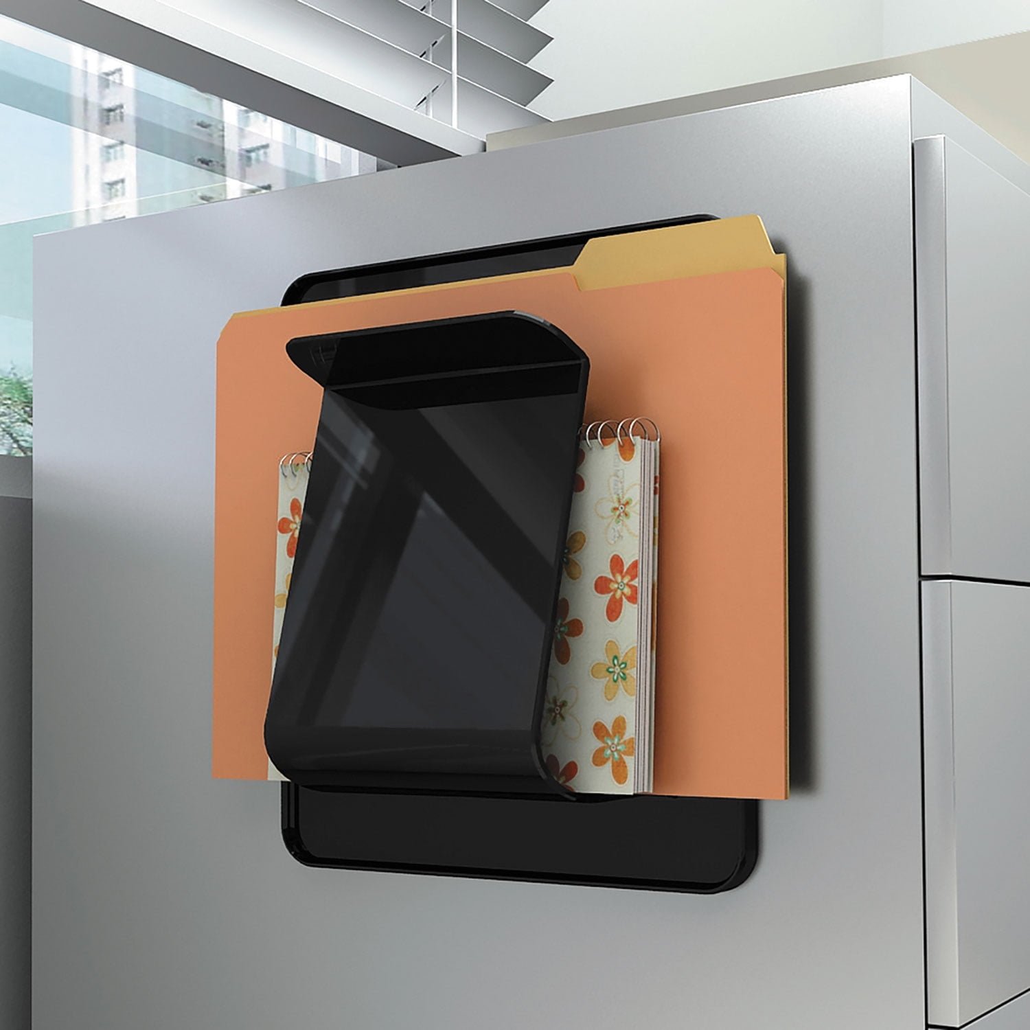Break-resistant, high-tension bracket keeps literature upright. Open-ended design for letter and legal sizes and oversized files. Pocket holds literature over 2″ deep.deflecto Stand Tall Wall File, Letter/Legal/Oversized, 9 1/4 x 10 5/8 x 1 3/4, Black -DEF65504H
