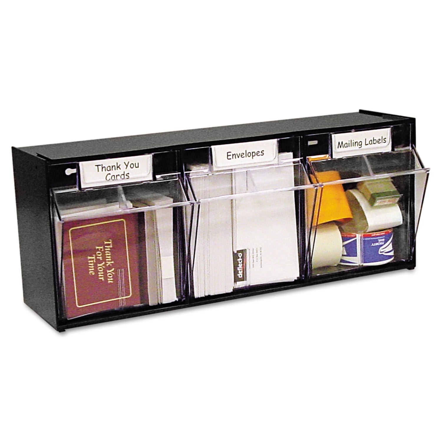 deflecto Tilt Bin Plastic Storage System, 3 Bins, 23 5/8 x 7 3/4 x 9 1/2, Black