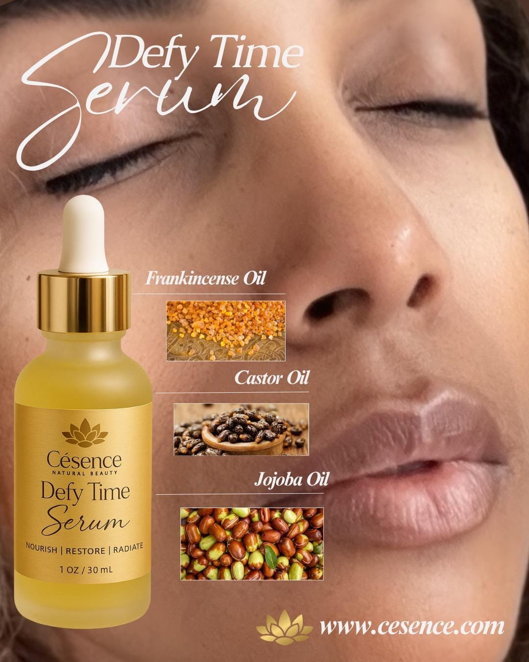 Defy Time Serum: Anti-Aging Glow Facial Oil with Jojoba, Castor & Frankincense.