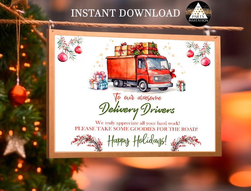 Delivery Driver Snack Sign: Holiday Thank You Printable Instant Download