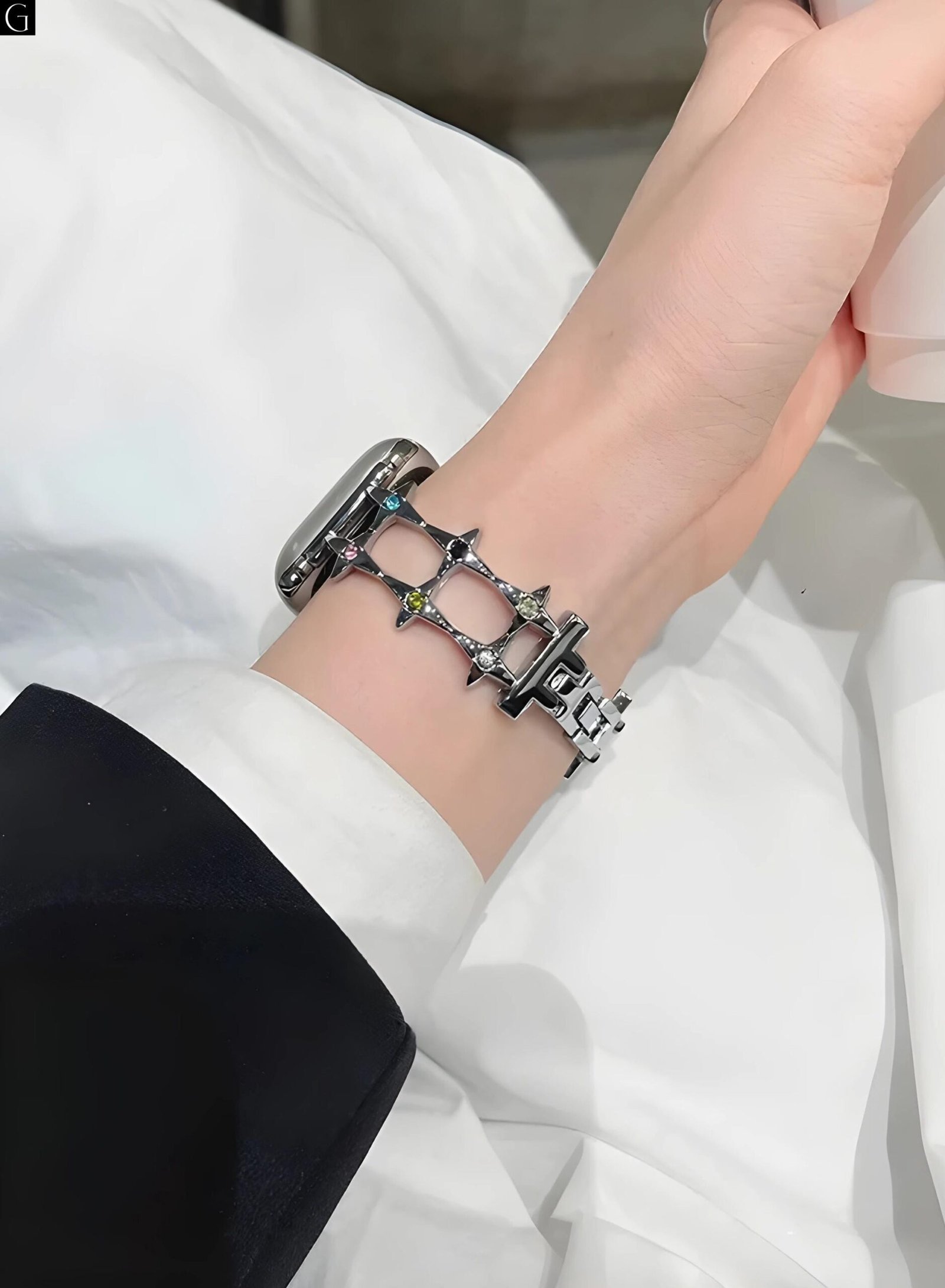 Enhance your Apple Watch with our designer stainless steel link band, available in gold, silver. Ideal for Apple Watch sizes 49, 46, 45, 44, 42, 41, 40 and 38mm. Perfect for women, these elegant Apple Watch bands will add a touch of sophistication to any wrist.