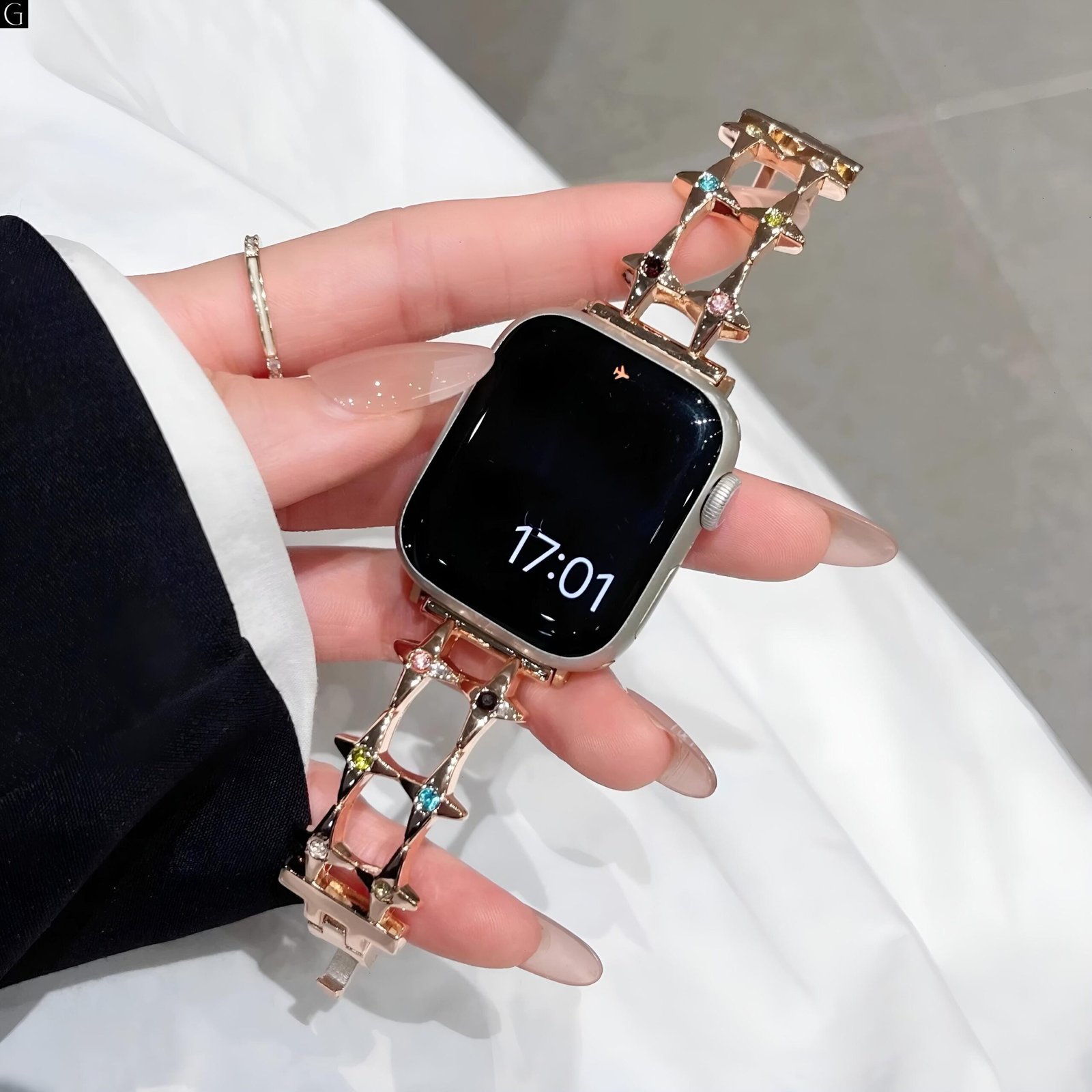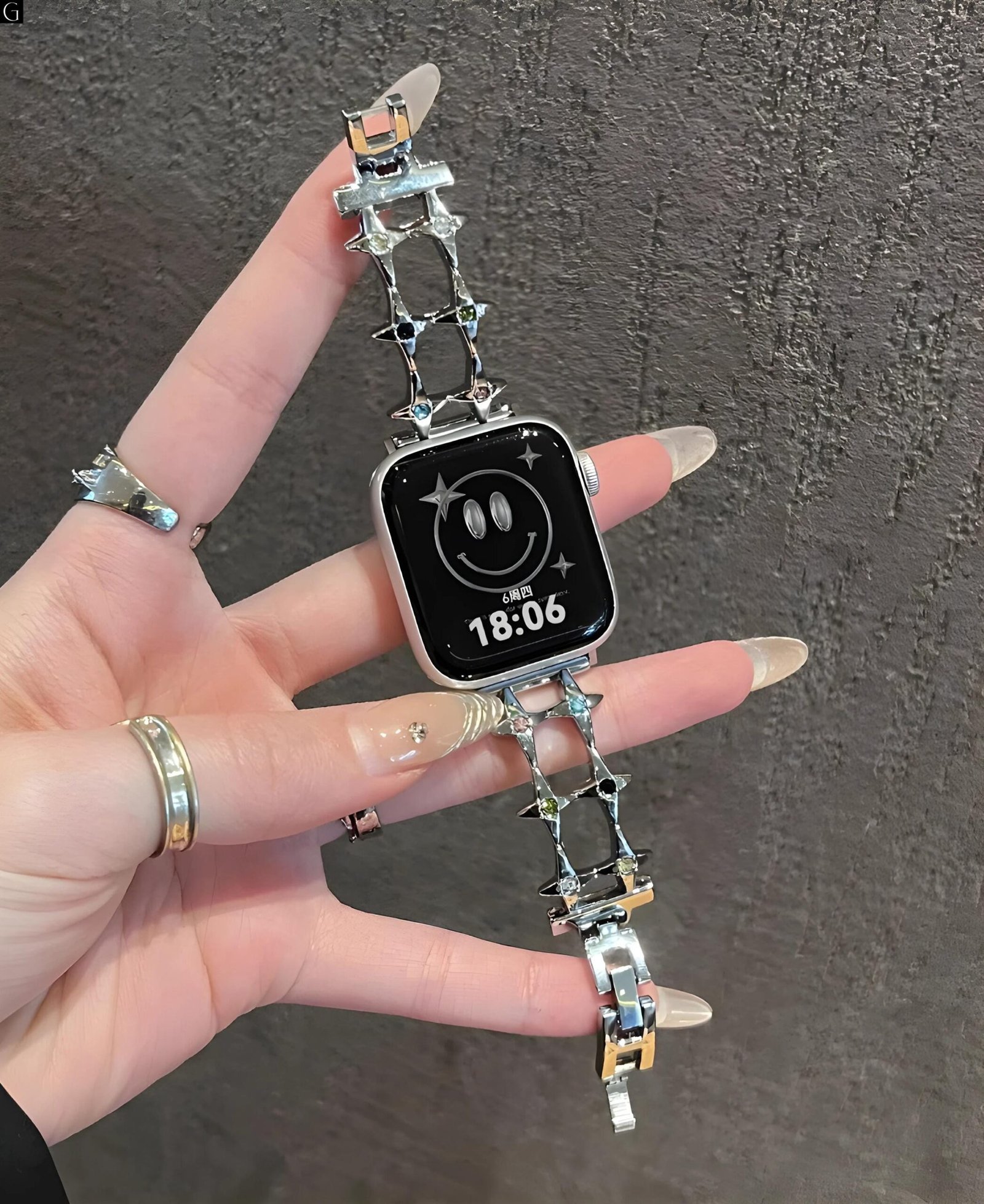 Designer Stainless Steel Apple Watch Band, Elegant Women’s Metal Link Bracelet Strap Series 9 8 7 6 SE Ultra 49 45 44 41 40mm