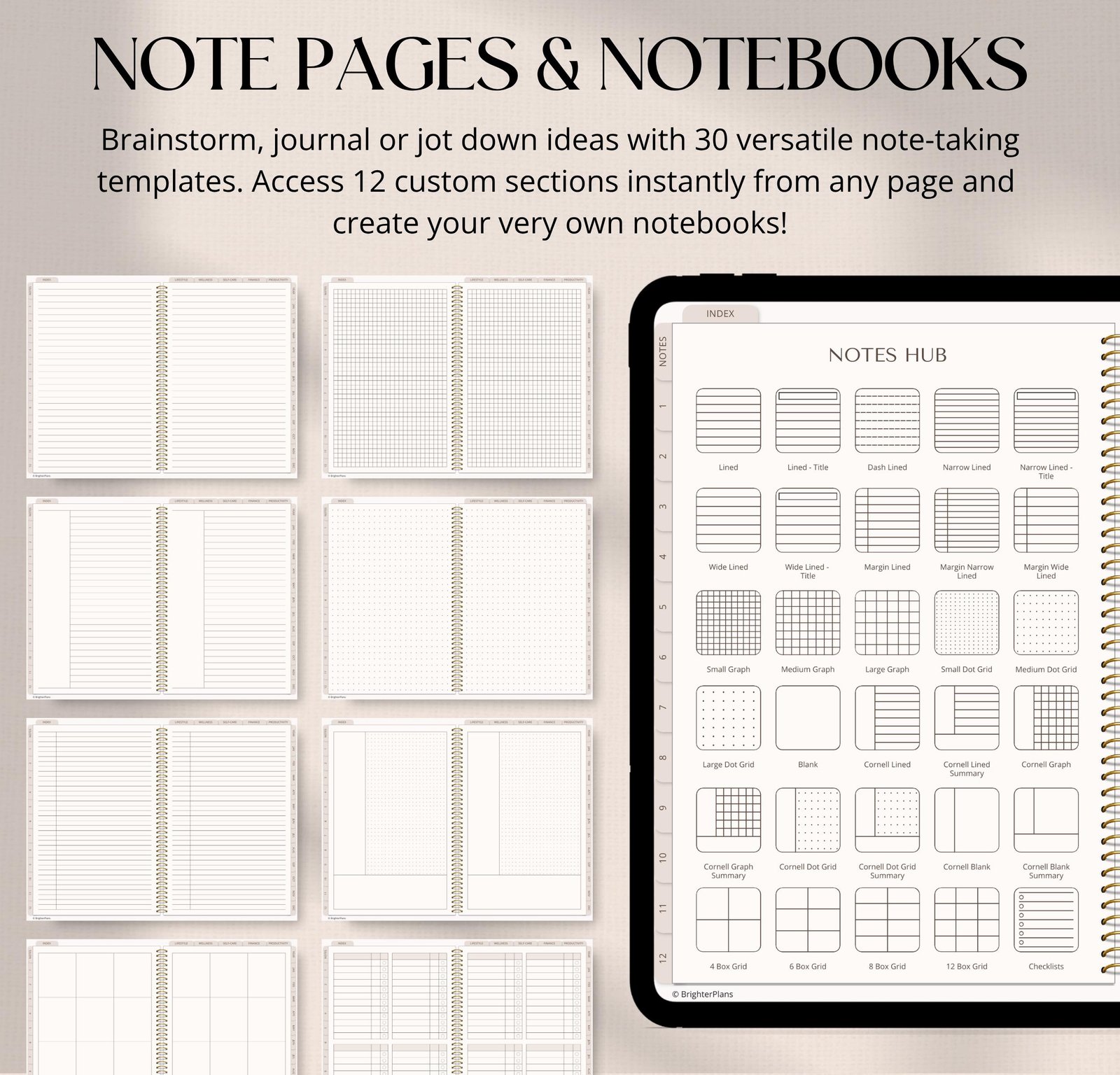 ✓ 30 unique note-taking templates and 12 customizable hyperlinked sections so you can create your own custom notebooks