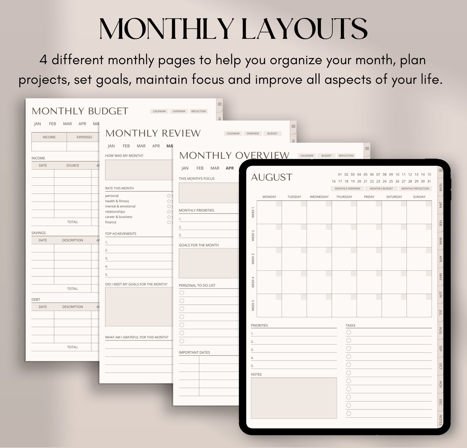 Digital Planner Undated, iPad & Android Planner, GoodNotes Planner, Digital Calendar, Daily, Weekly, Monthly Journal, 2024 2025 iPad Planner