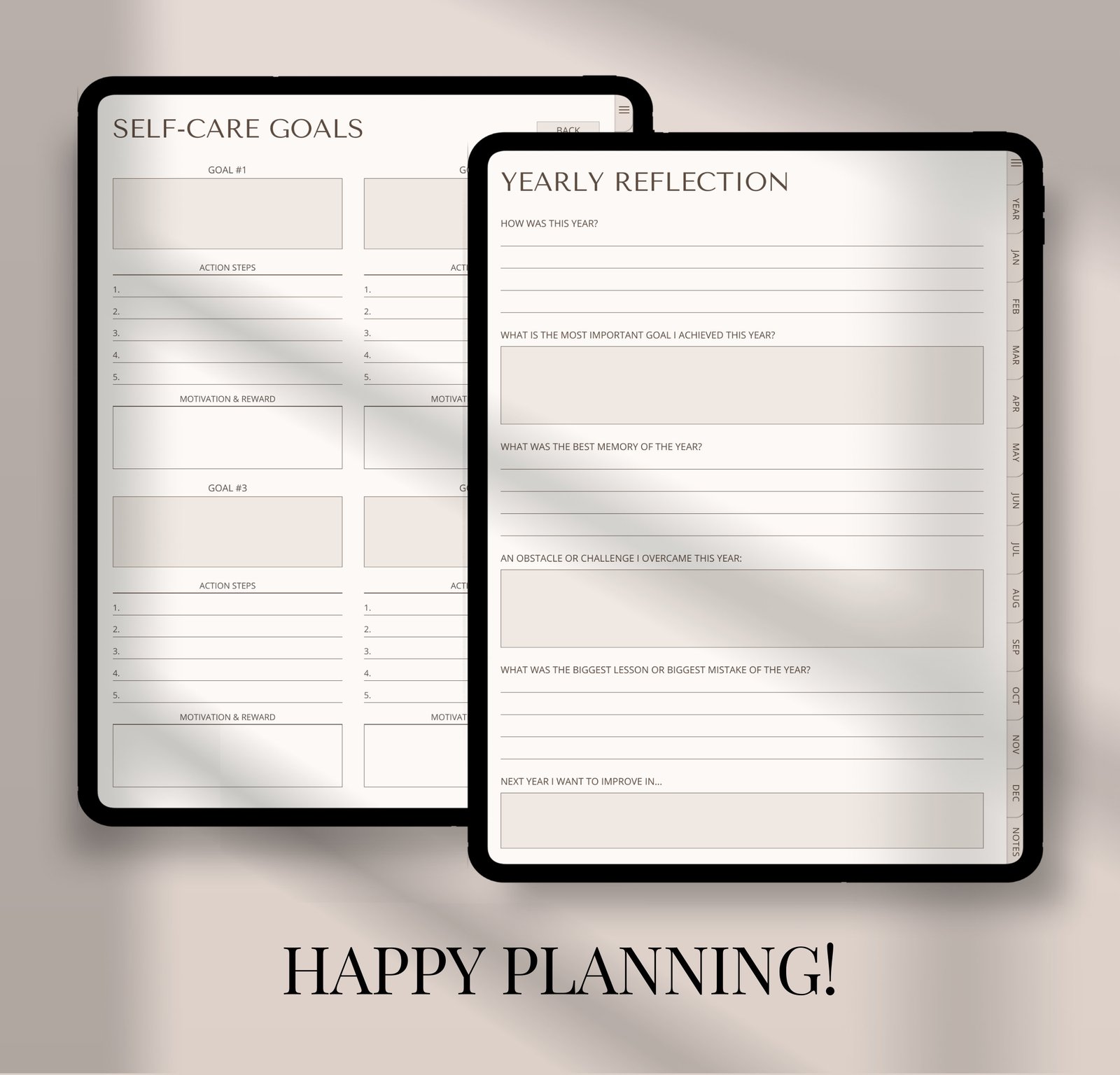 Become your best self with our undated digital planner, designed for GoodNotes, Notability and other annotation apps!
