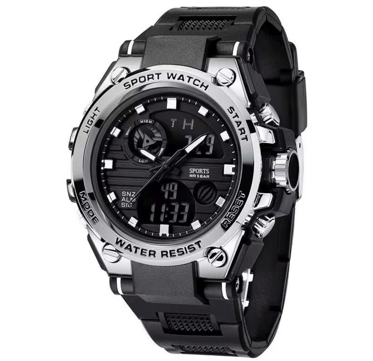 Stay stylish and on time with this unisex digital sports watch. It features a clear LED display, day/date function, 3BAR water resistance, and a durable alloy case with a comfortable resin band. Perfect for everyday wear, workouts, and gifting.