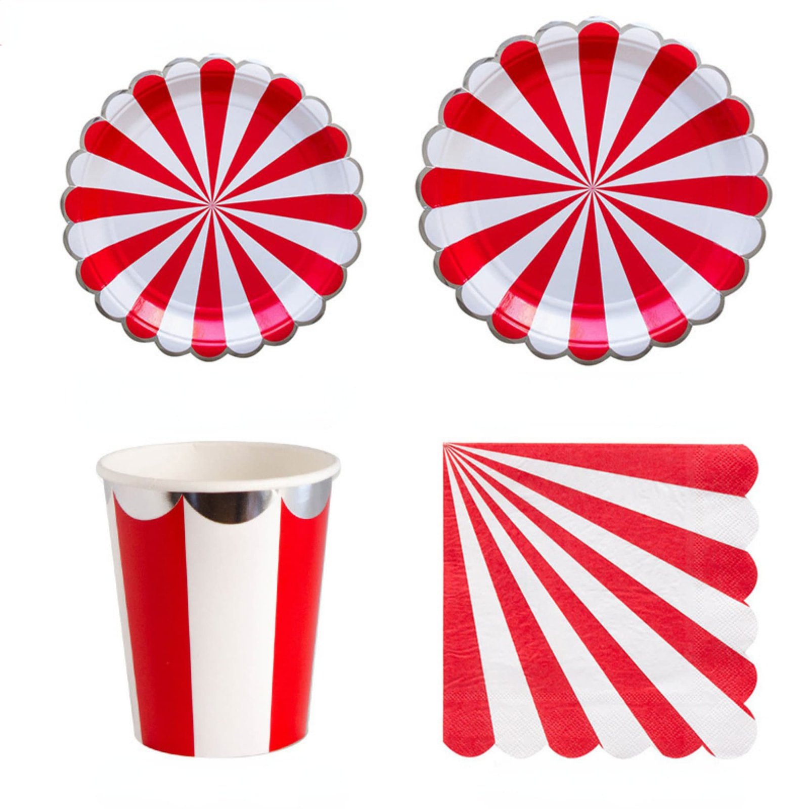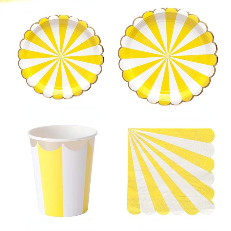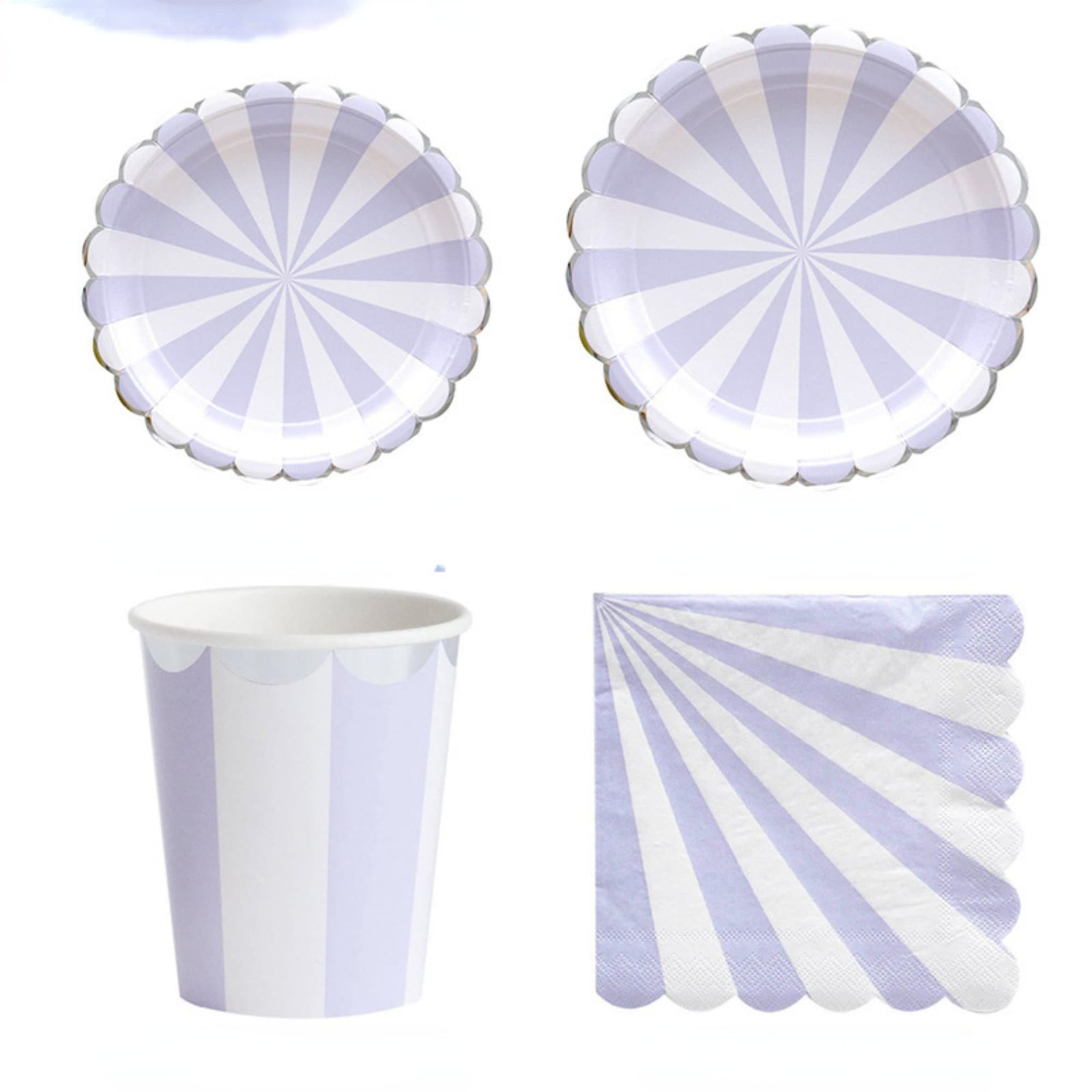 Disposable Party Tableware Candy Color Stripes Cup Plates Baby Shower Birthday Party Supplies Carnival Wedding Favors Dinnerware Decoration