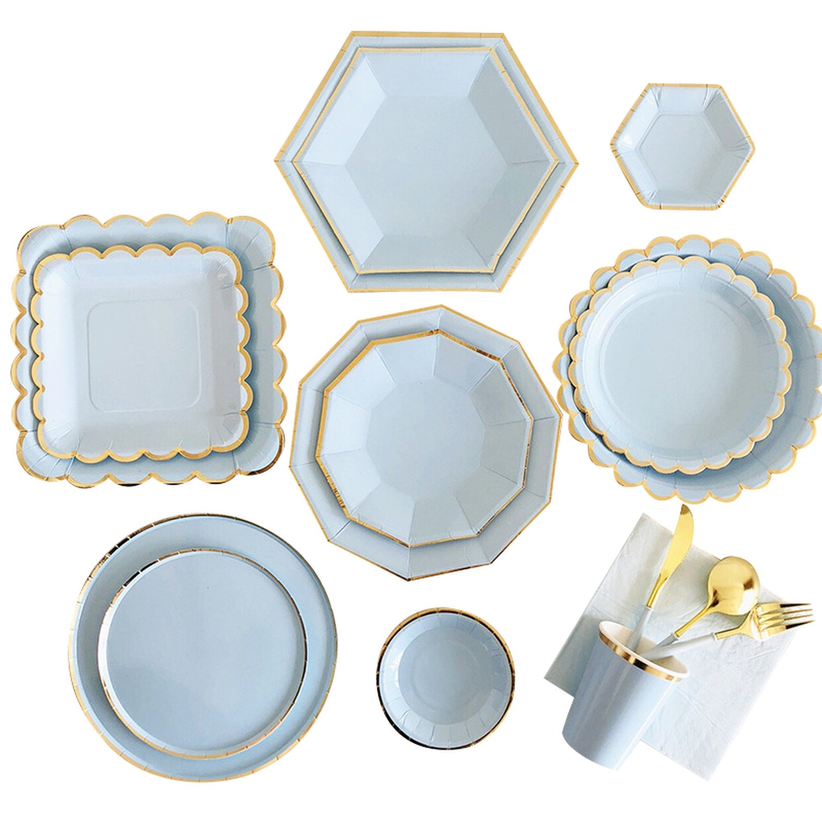 Disposable Party Tableware Mint Blue Cup Plates Baby Shower Birthday Party Supplies Carnival Wedding Favors Dinnerware Decoration