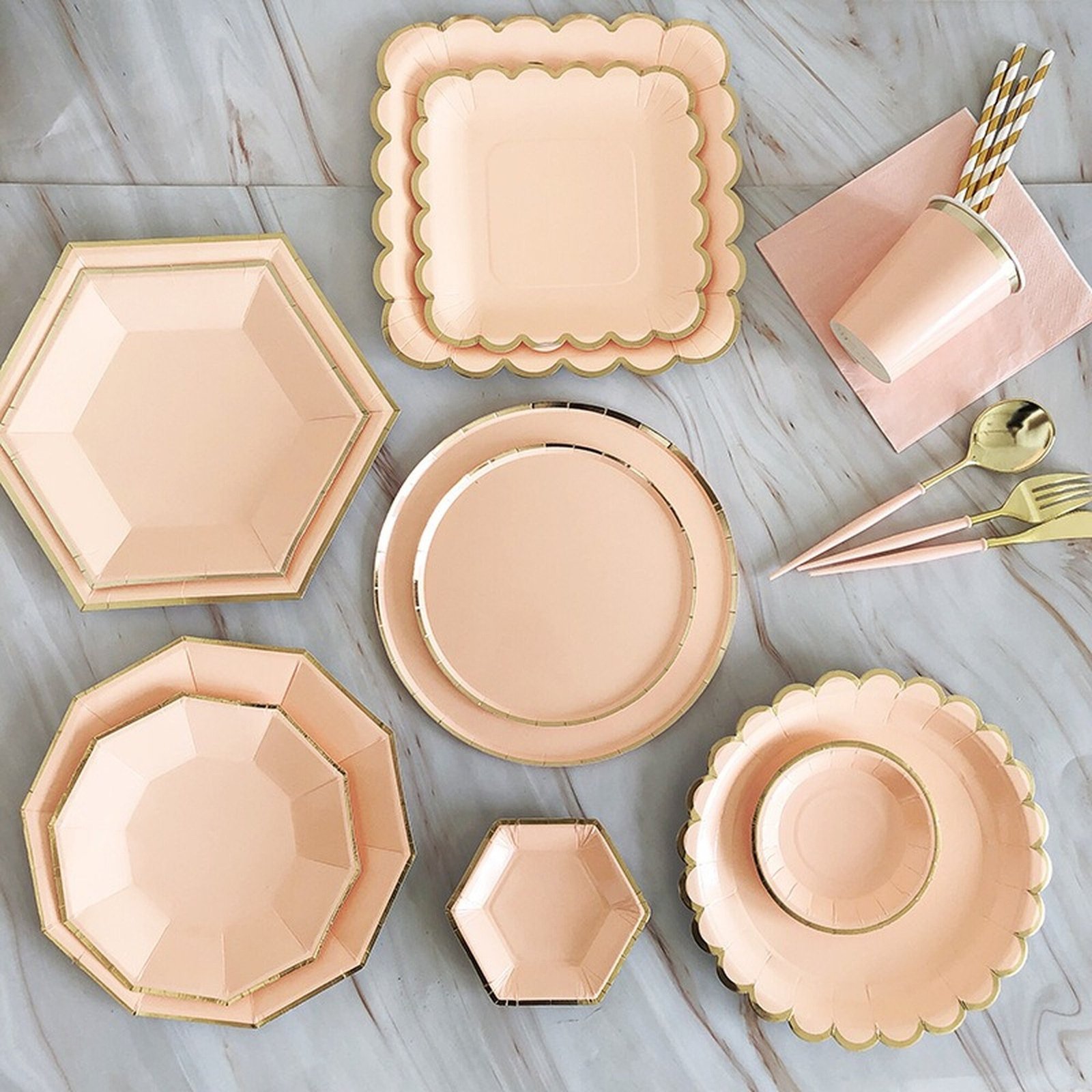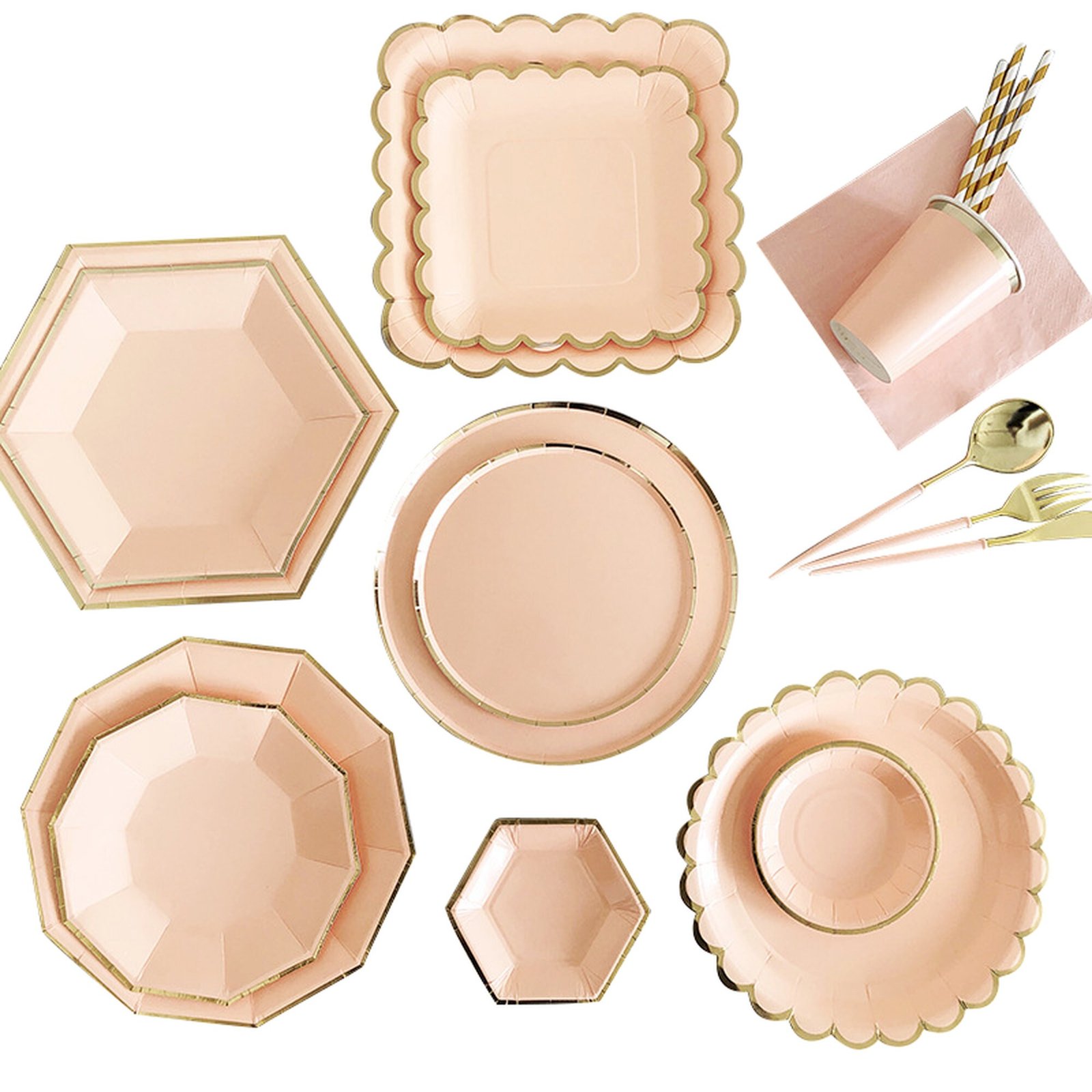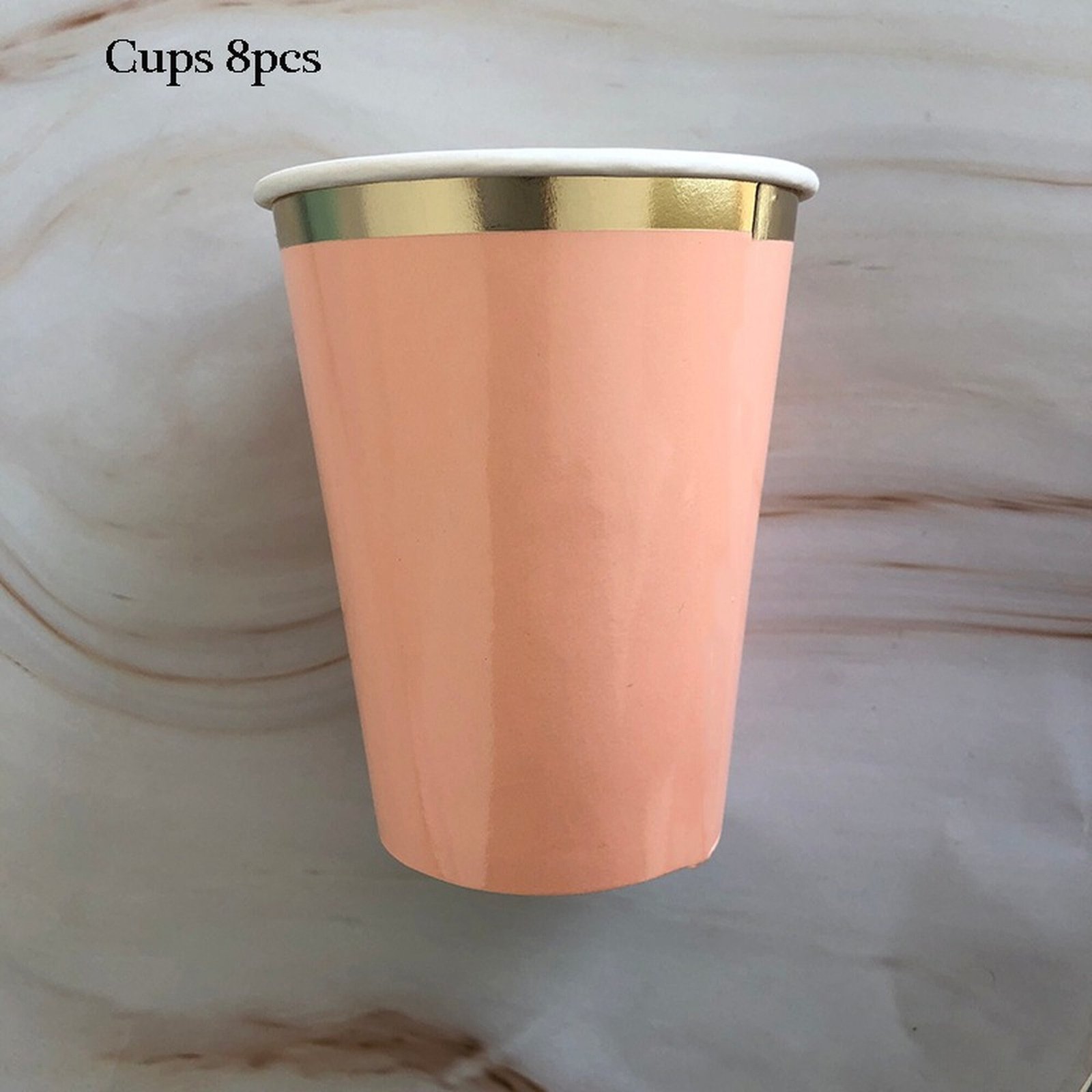 Disposable Party Tableware Pink Cup Plates Baby Shower Birthday Party Supplies Carnival Wedding Favors Dinnerware Decoration