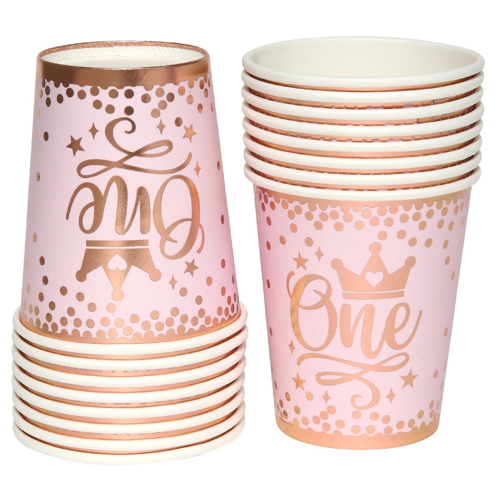 Disposable Tableware 1st Birthday Decor Girls Pink One Birthday Party Dinnerware First Year Decorations Paper Plates Cups Cutlery