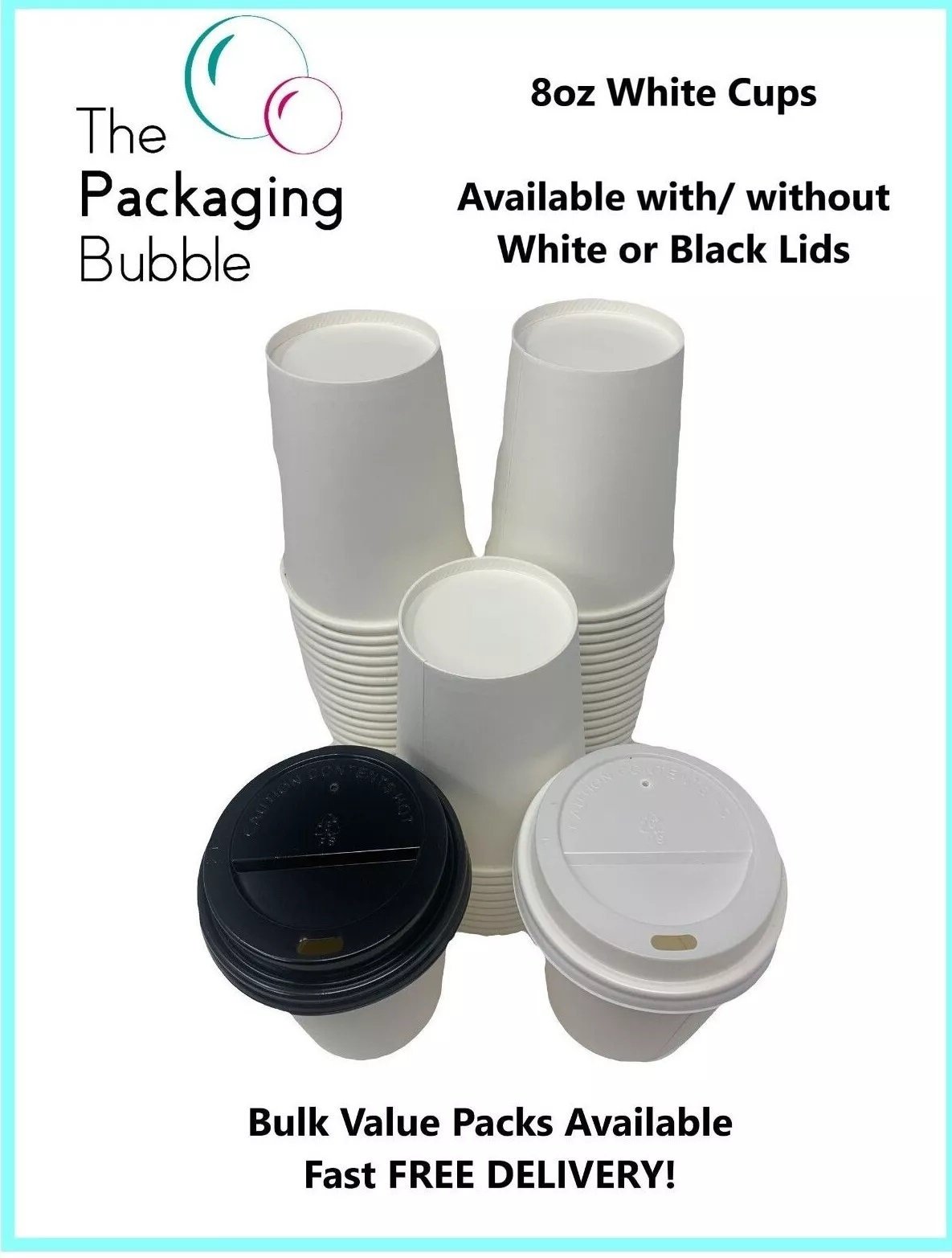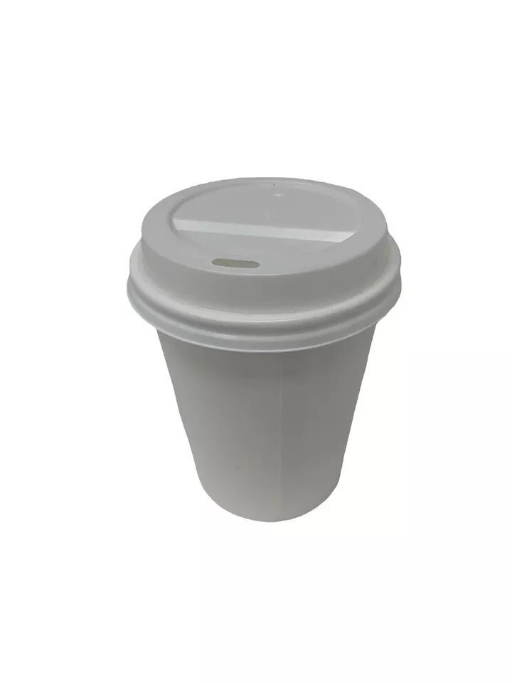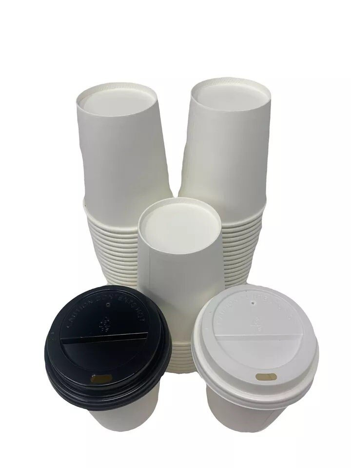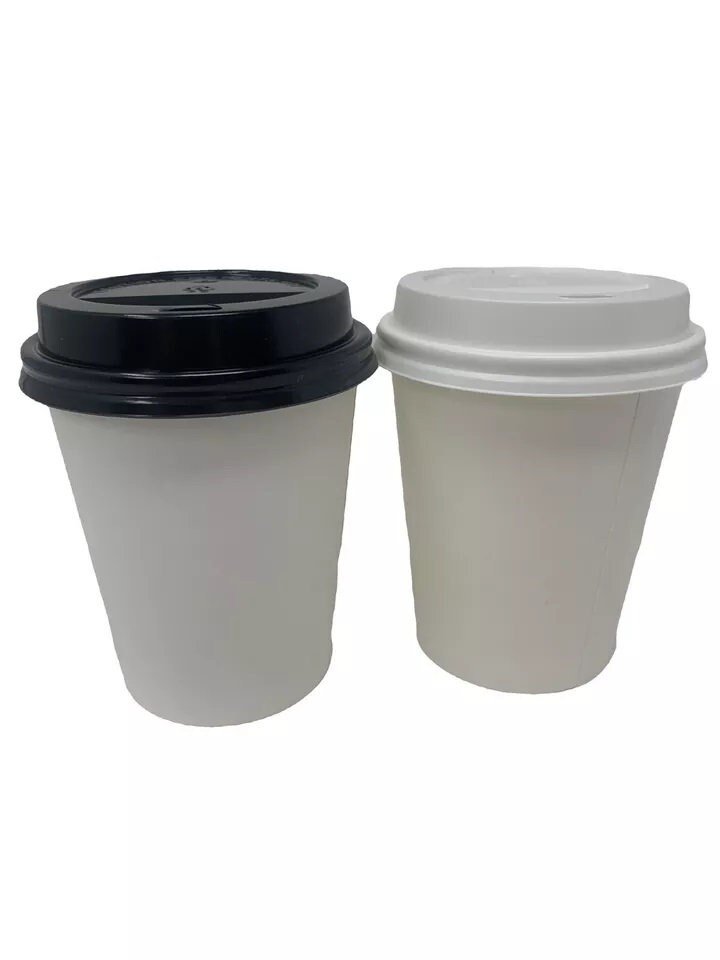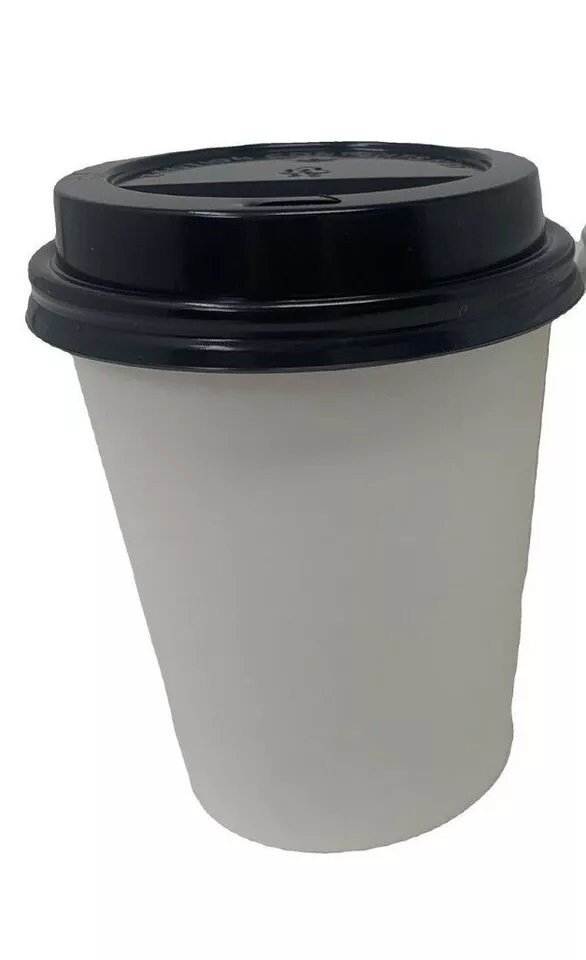 Disposable White Coffee Cups Single Wall 8oz Paper Cup Reusable Lid Black