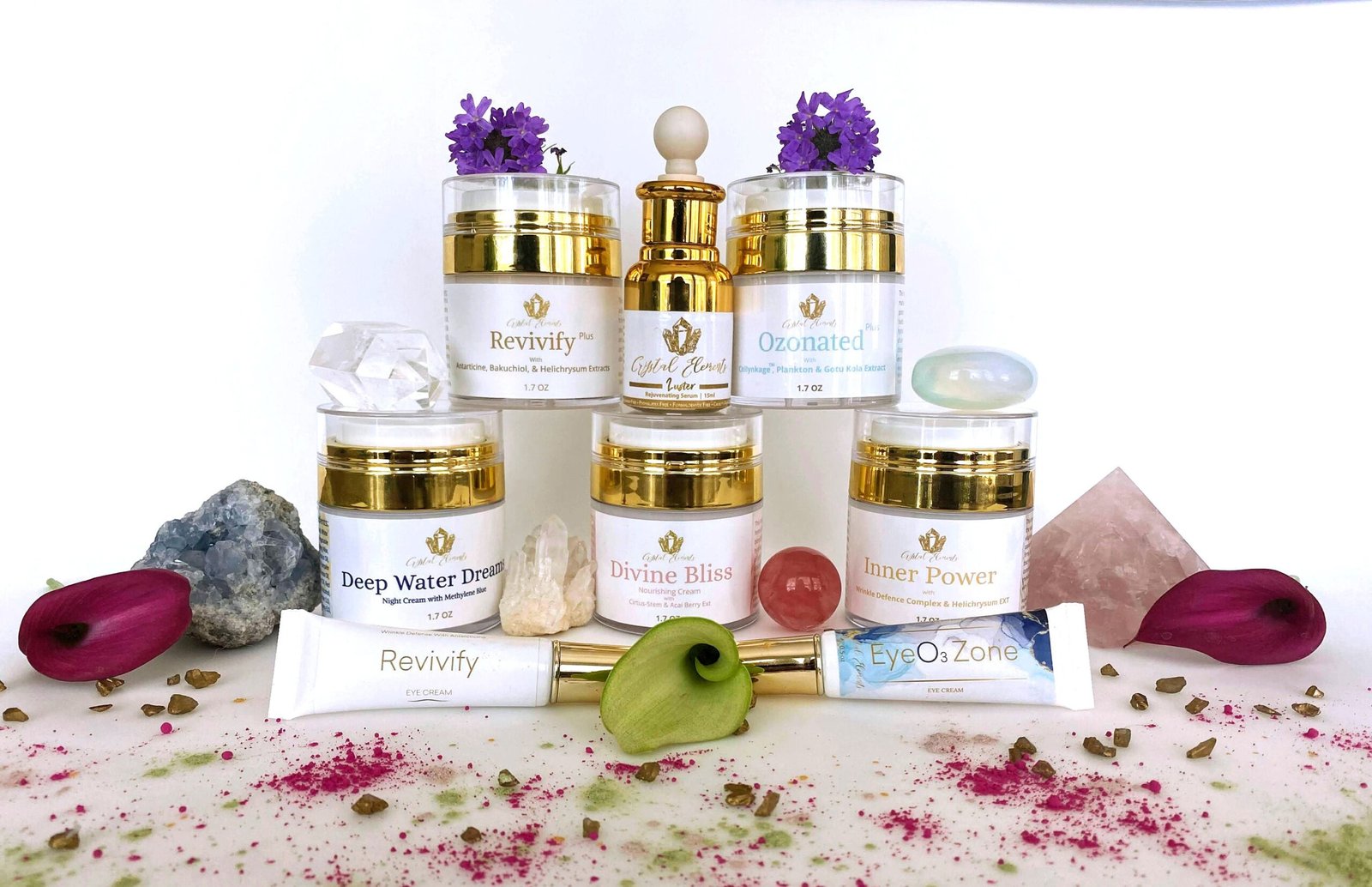 Crystal Elements Creams are natural and antioxidant-rich, with perfect ingredients to help abolish signs of aging and enable the skin to soak up moisturizers for achieving the best results without the use of harsh and toxic chemicals.
