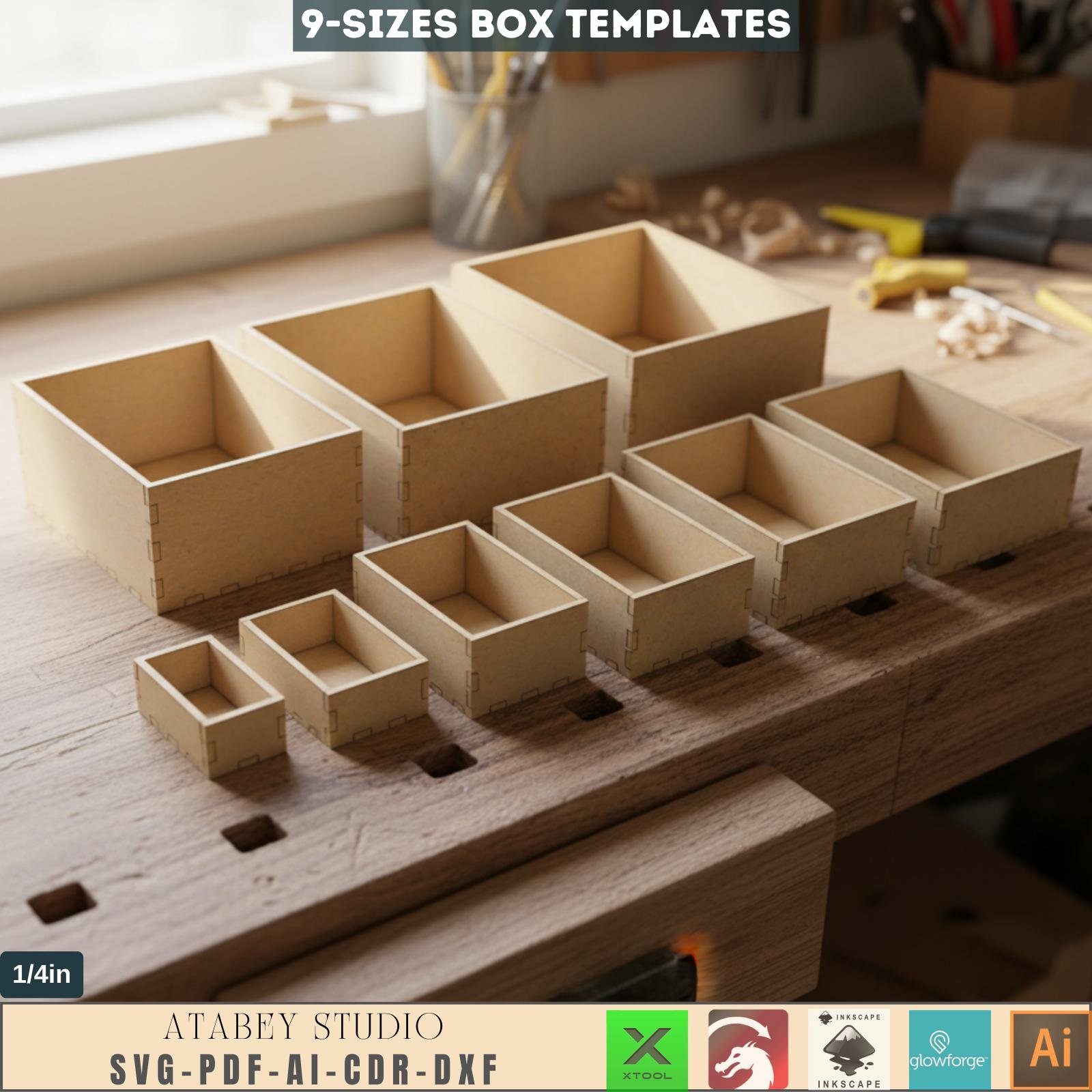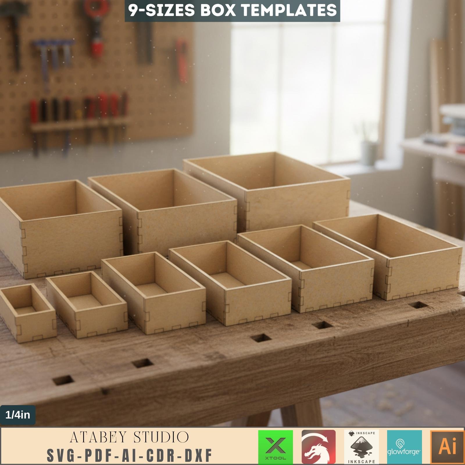 Elevate your crafting projects with our Laser Box Cut Templates. This comprehensive digital download includes meticulously designed templates in SVG, DXF, AI, PDF, and CDR formats, tailored specifically for 1/4 inch 6mm thick materials. Perfect for a variety of laser cutting machines and compatible with numerous design software programs, these templates enable you to create beautifully crafted wooden boxes with ease.