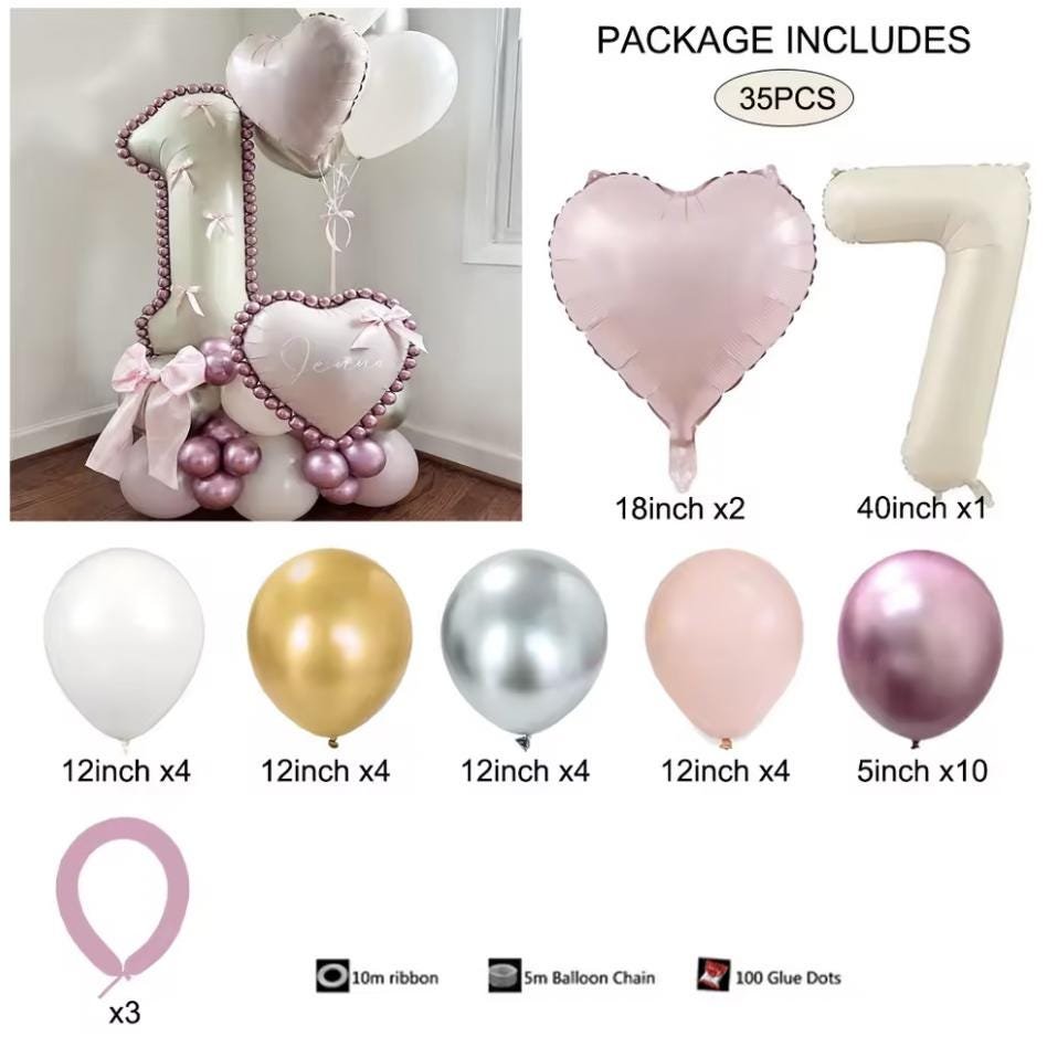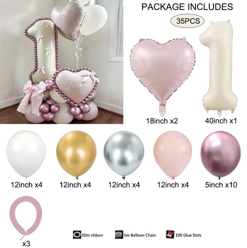 DIY Number Balloon Stack Kit: Pink, Cream & Gold Birthday Decorations 35 PCS