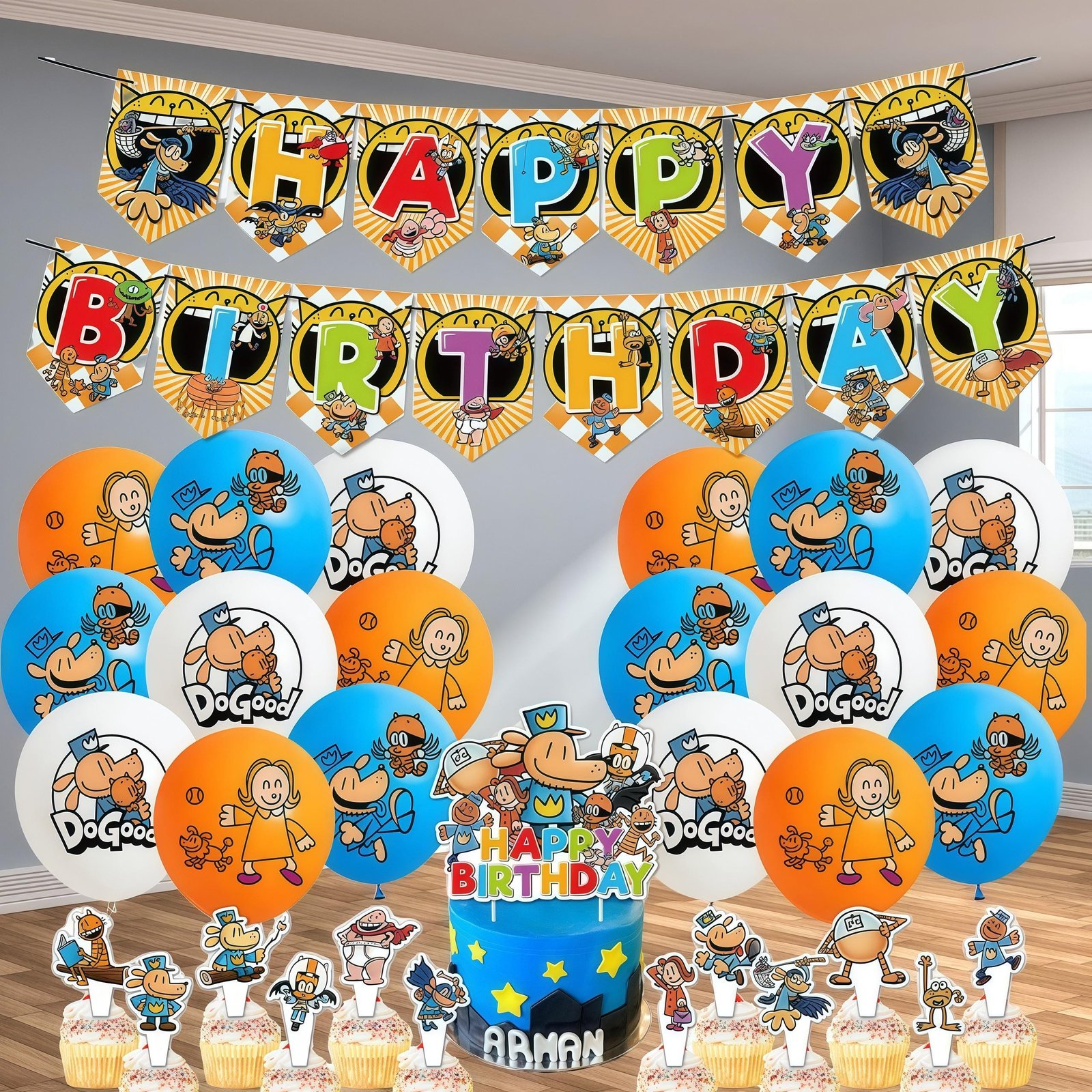 Dogman Birthday Party Decoration Set: Banner, Balloons, Cake Toppers