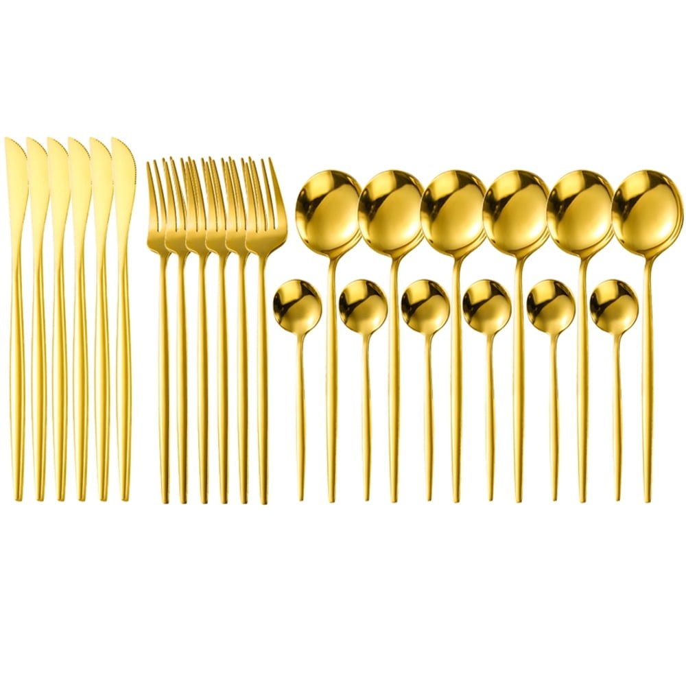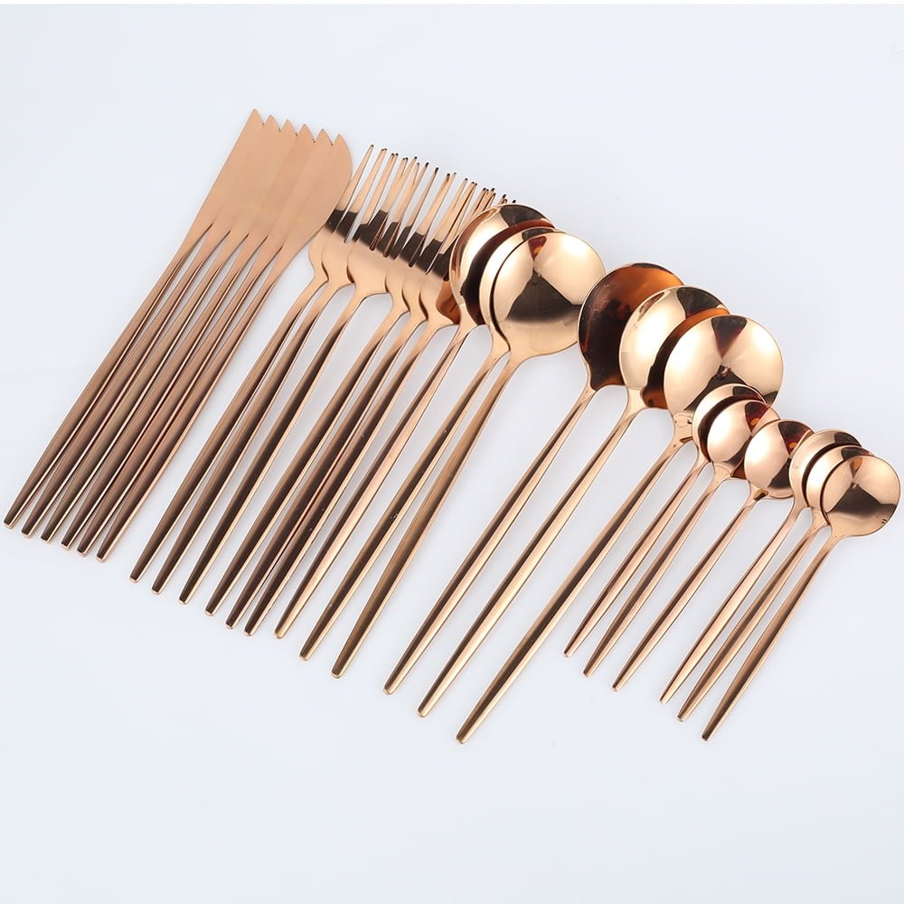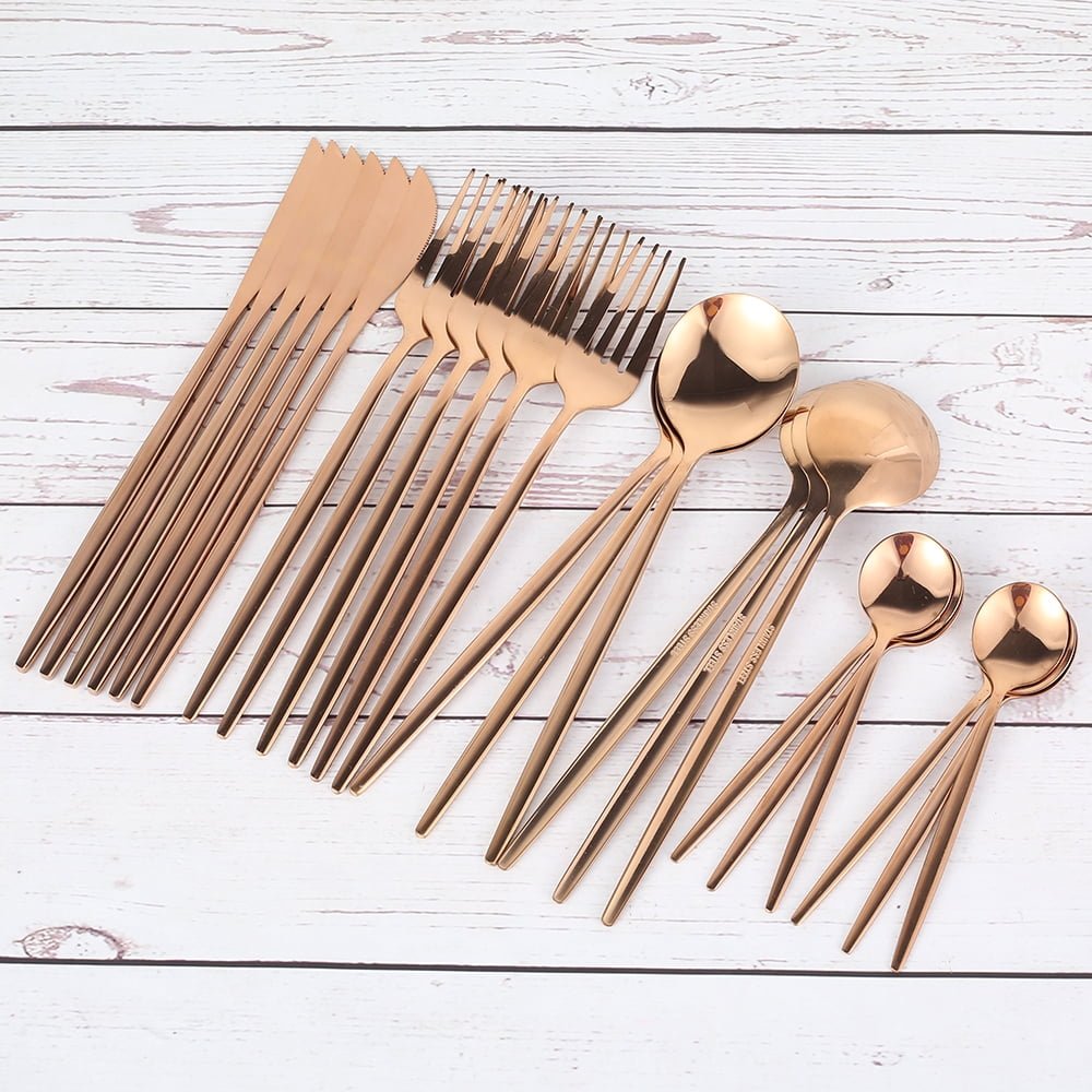 Dznils 24 Piece Stainless Steel Flatware Set, Rose Gold Cutlery Utensil Set, Tableware Service for 6