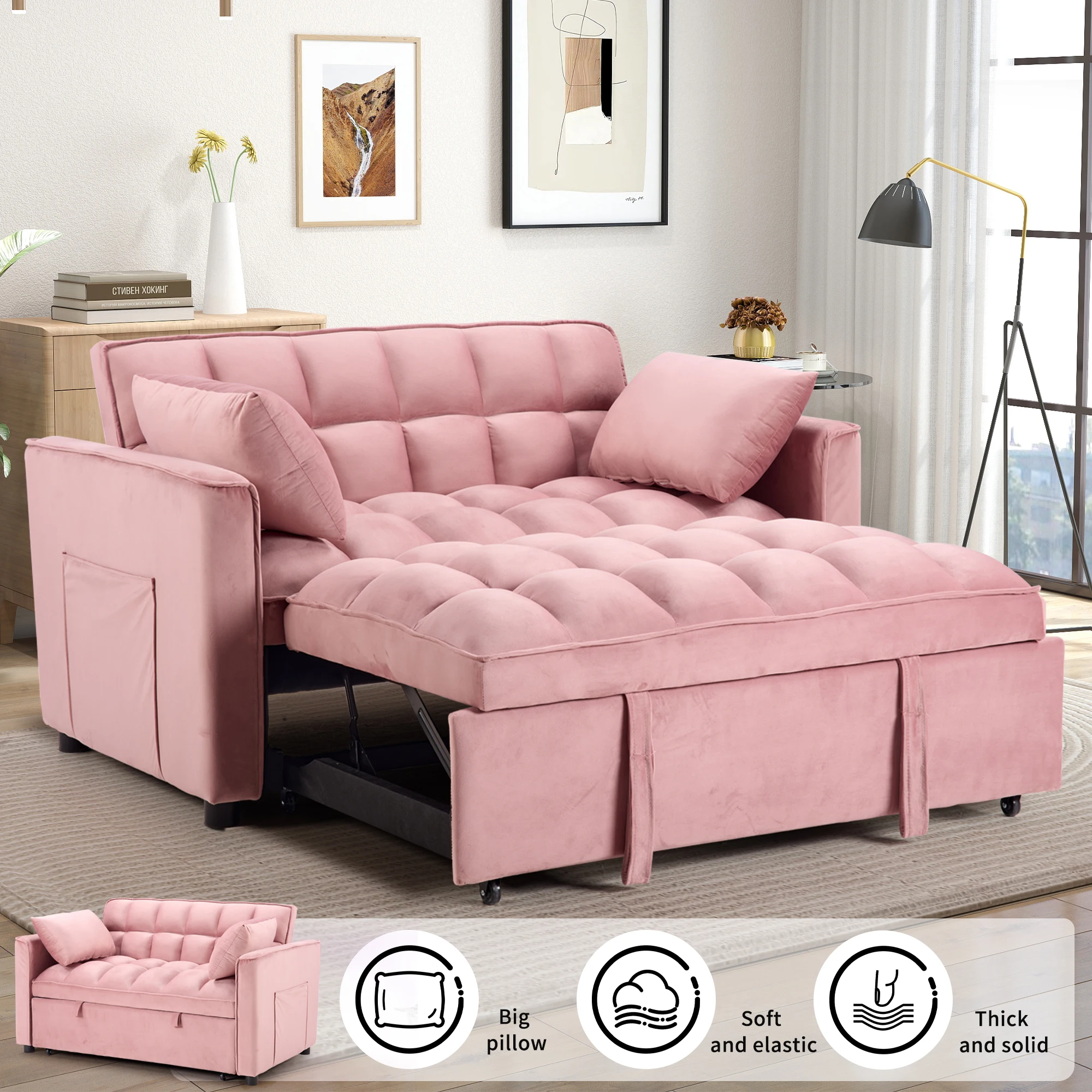 EBELLO 3-In-1 Multifunctional Modern Sofa Bed Comfortable Double Sofa With Pillows