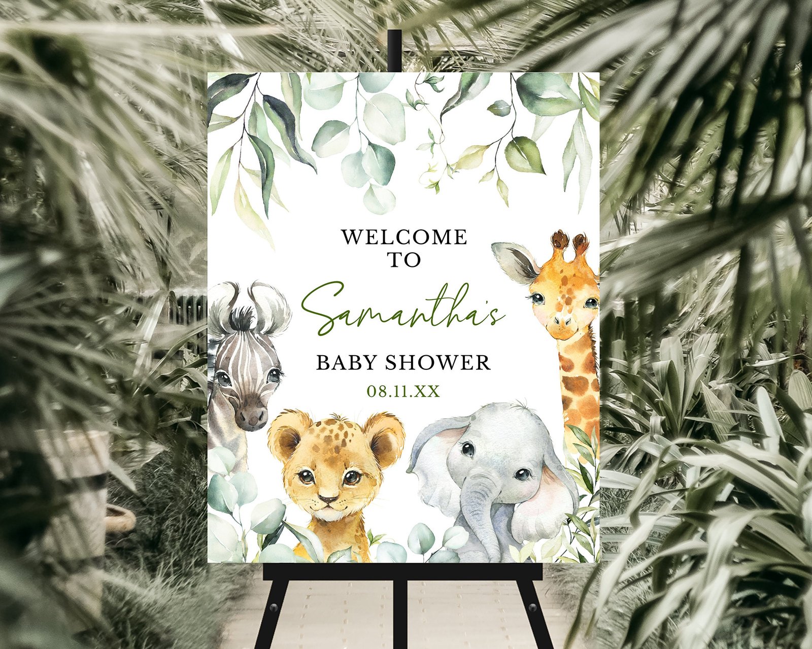 Editable A Little Wild One Baby Shower Welcome Sign, Safari Jungle Baby Shower Poster, Greenery Safari Animals Baby Shower Decoration,BBS340