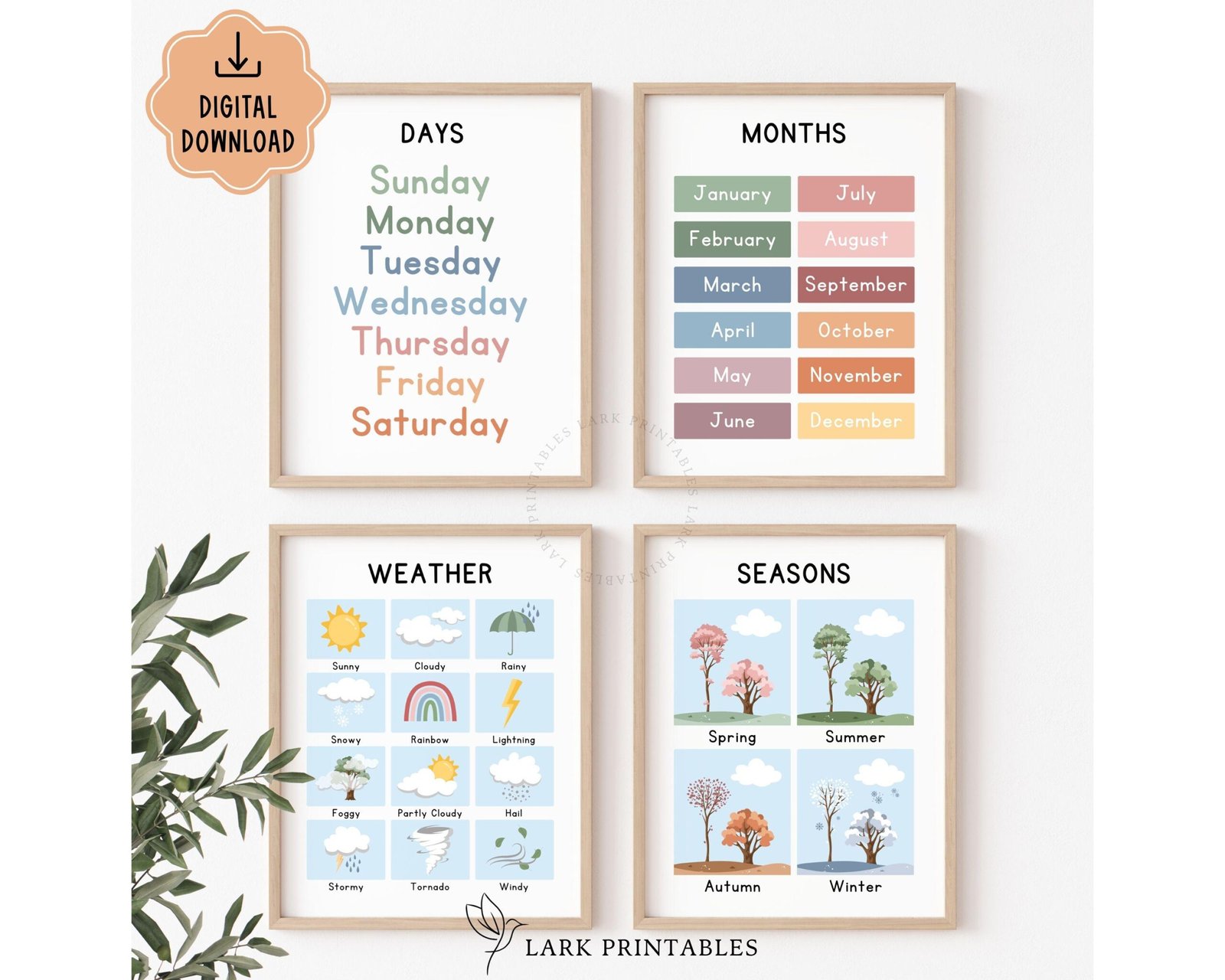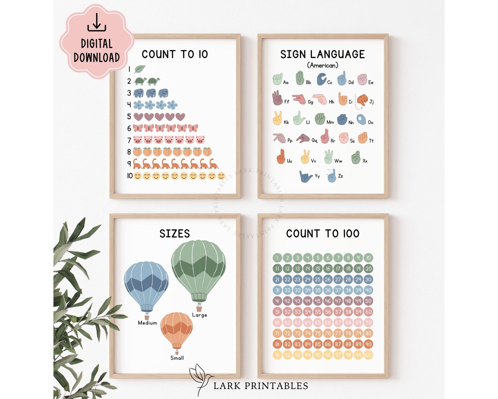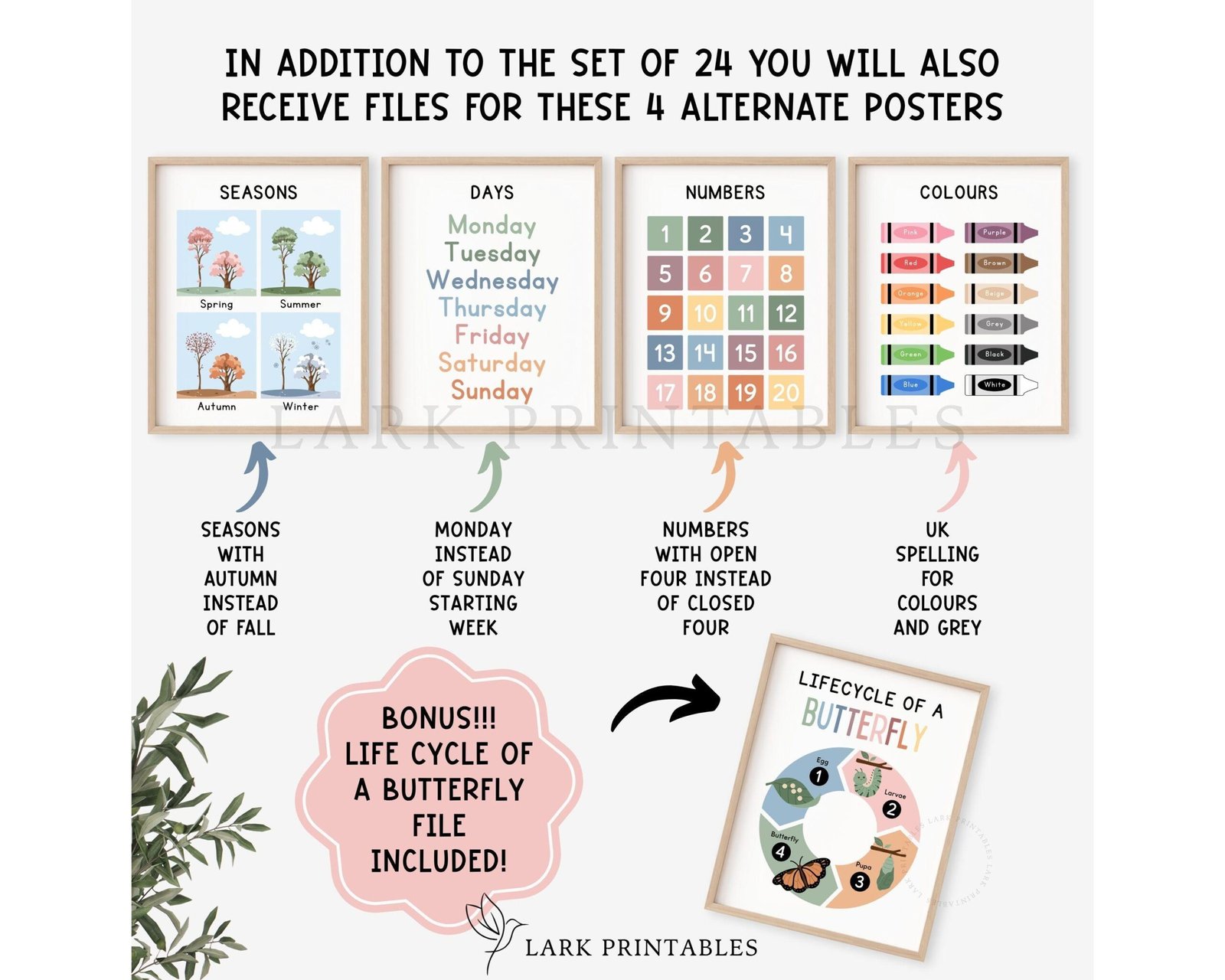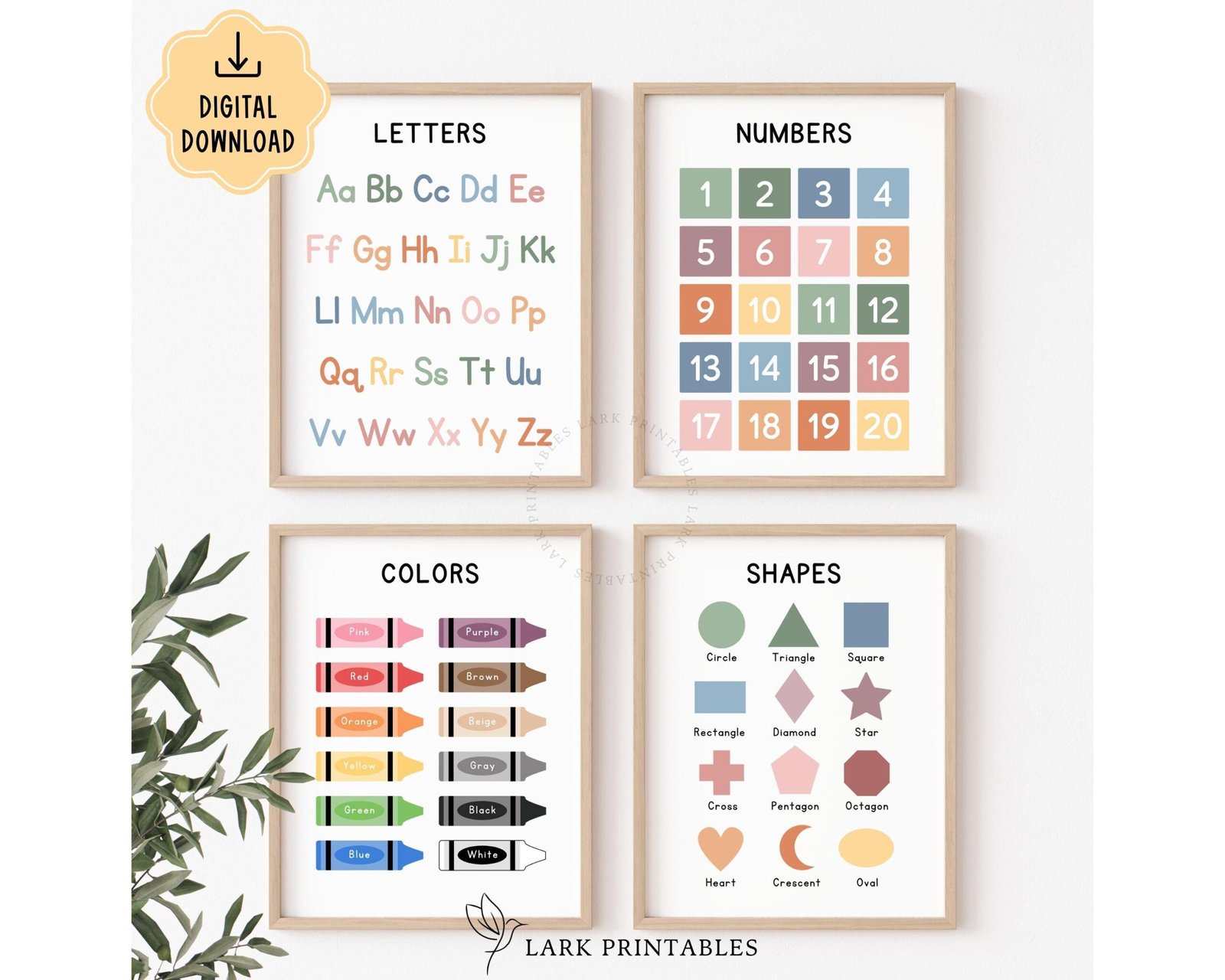 Set of 24 Educational Toddler printable posters in calming palette, perfect for you classroom, playroom, nursery or homeschool room!!!
