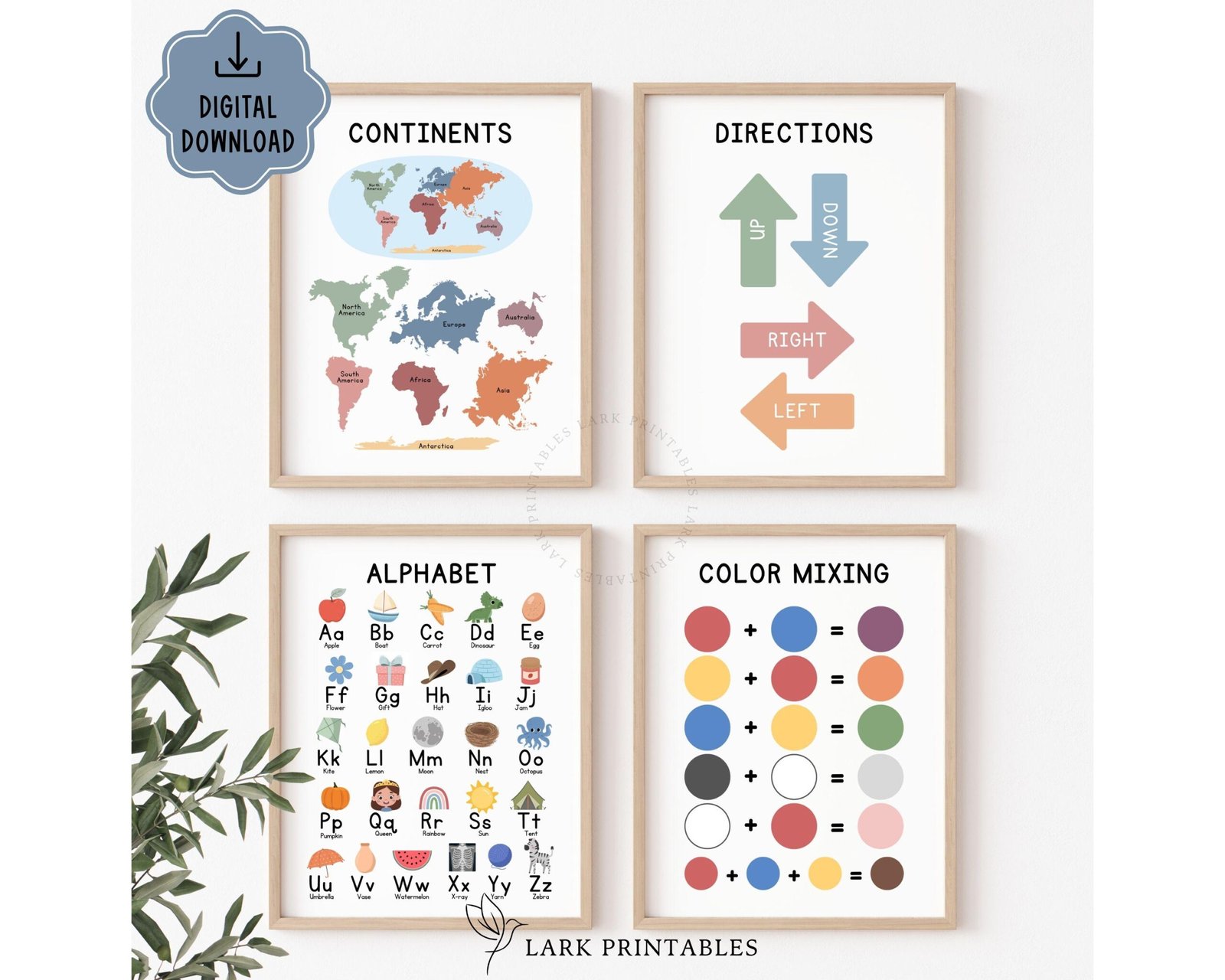 Educational Posters DIGITAL DOWNLOAD, Toddler Learning Posters, ABC Poster Playroom Printable Decor Alphabet Poster Kids Wall Art Homeschool