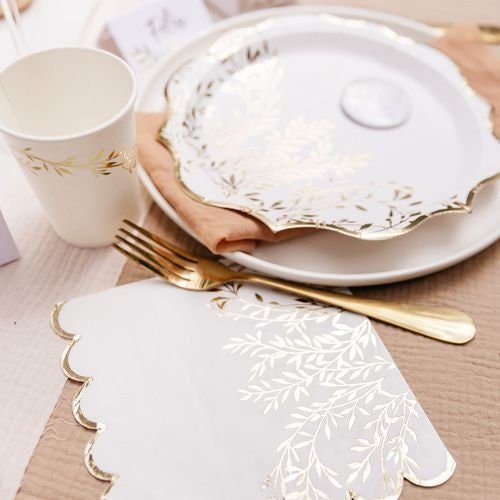 Elegant White Paper Cups with Gold Leaf Design – Set of 8