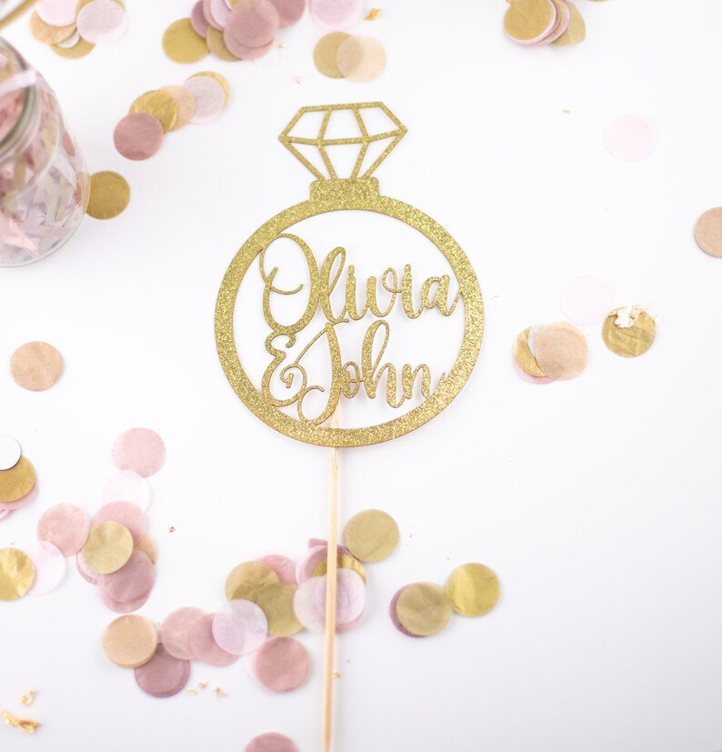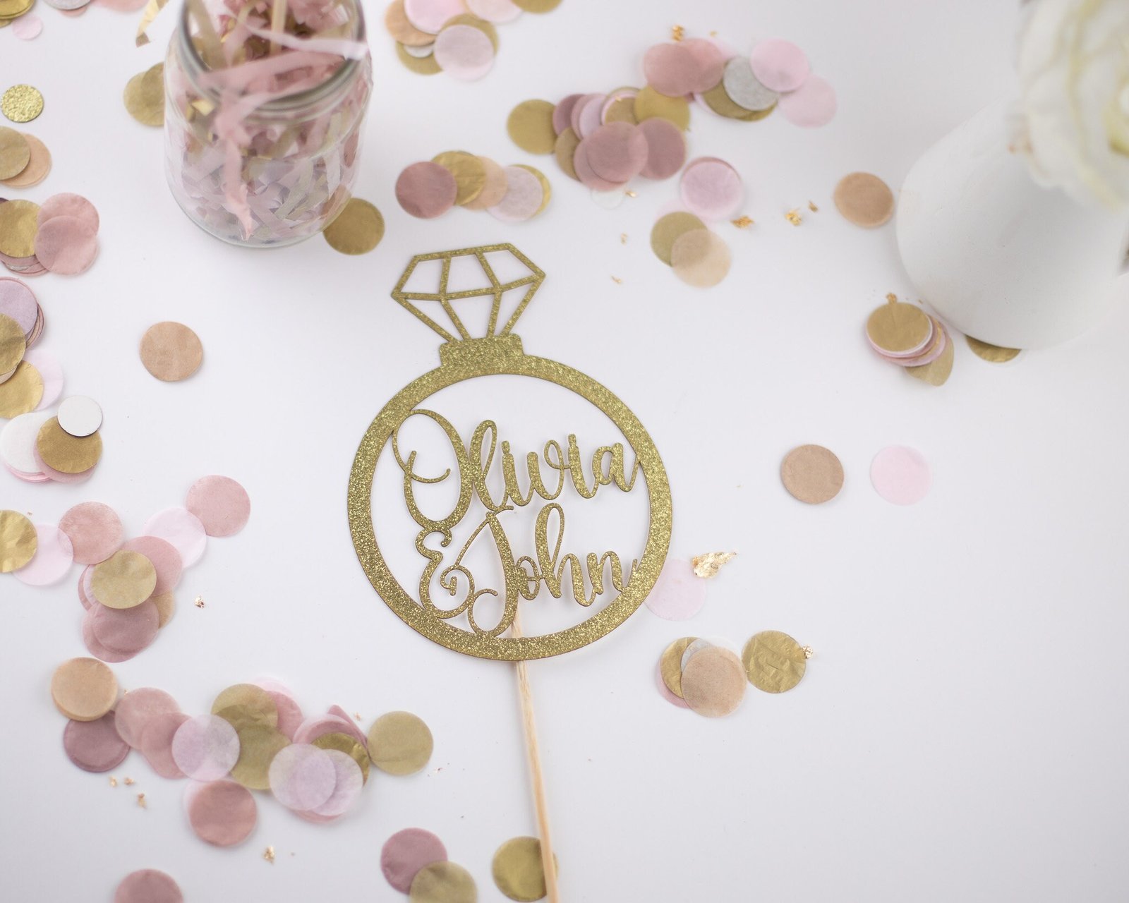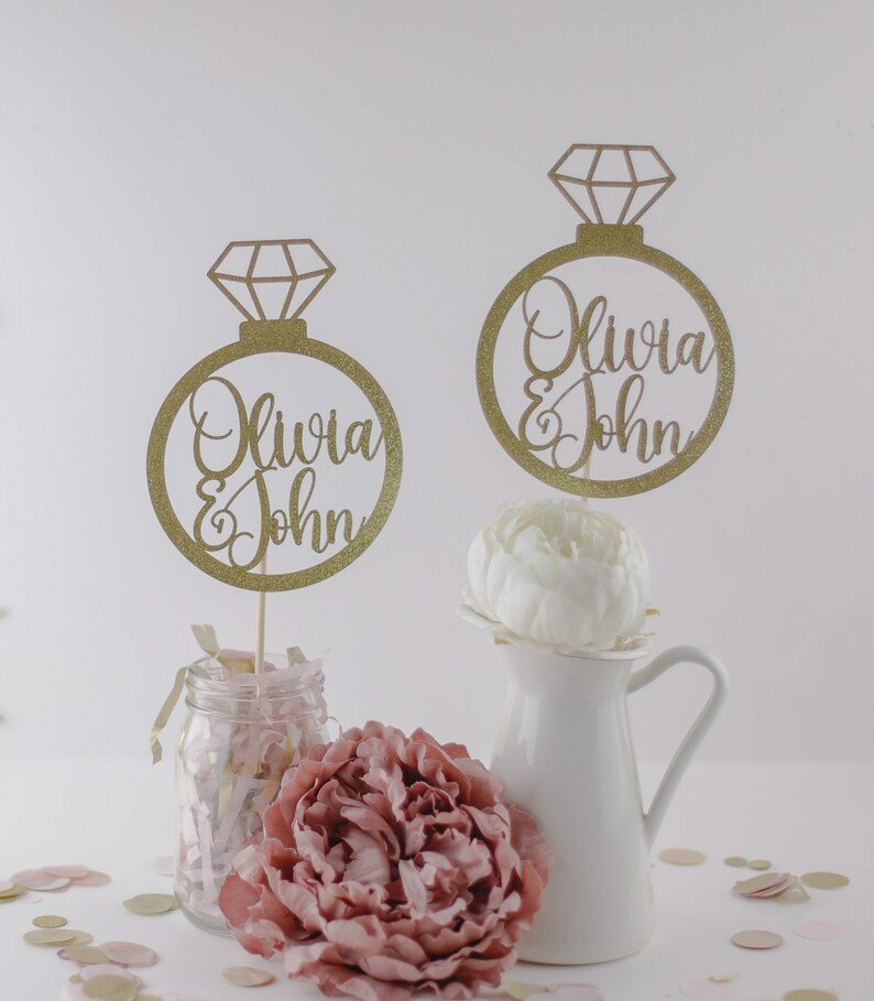 Engagement Party Decorations, Personalized, Centerpiece, Engagement Ring Decorations, Engaged ,Bridal Shower Decor, Set of 4