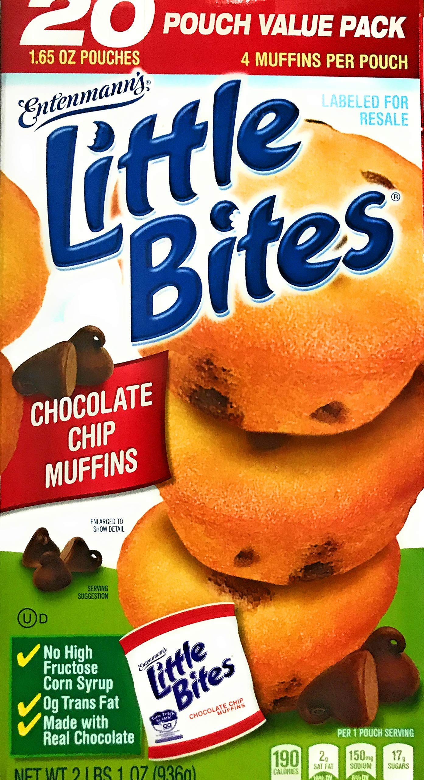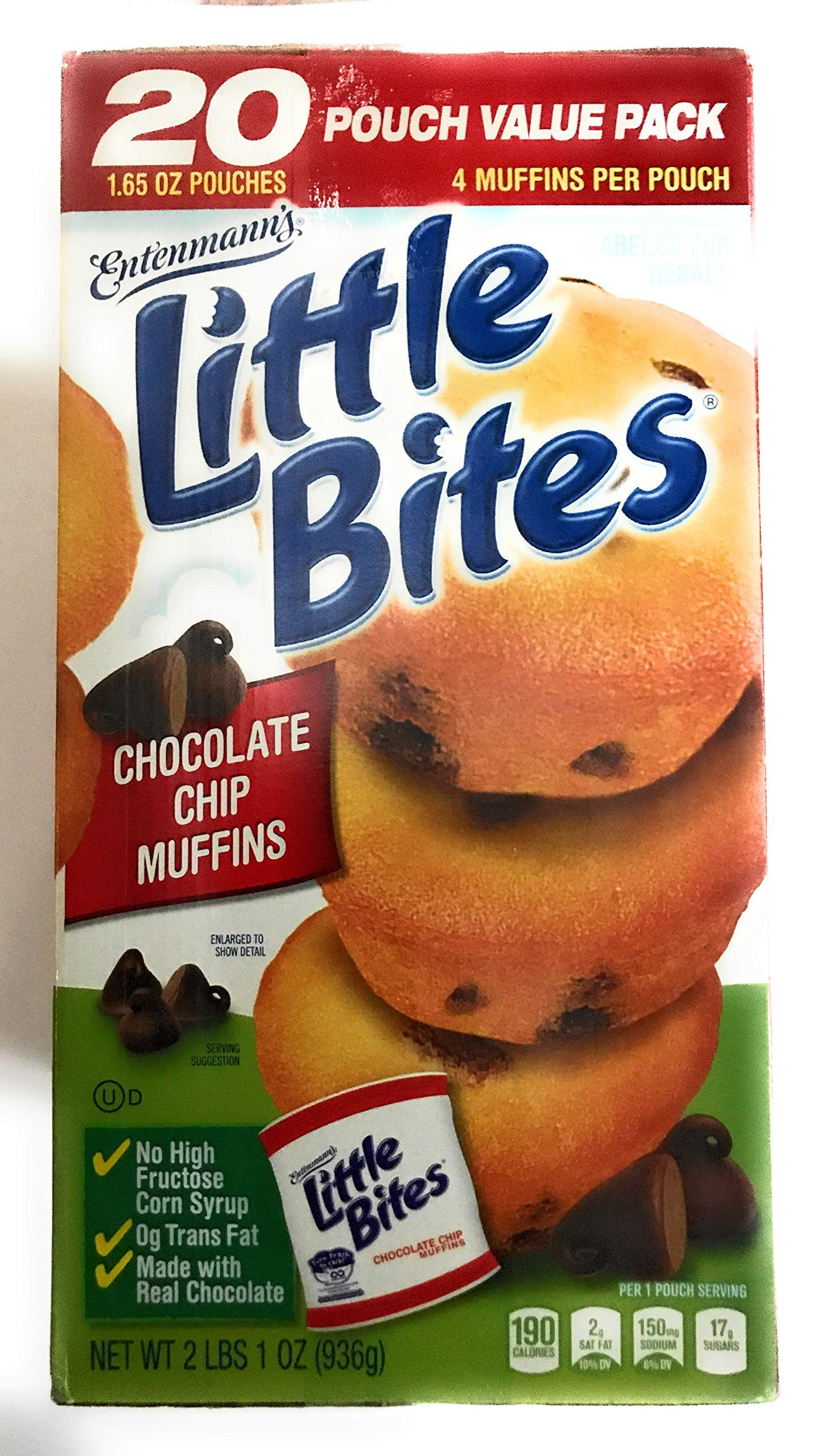 Entenmann's Little Bites Chocolate Chip Muffins, 20 Pouch Value Pack