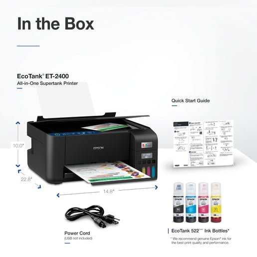 Epson EcoTank ET-2400 Wireless Color All-in-One Cartridge-Free Supertank Printer with Scan and Copy