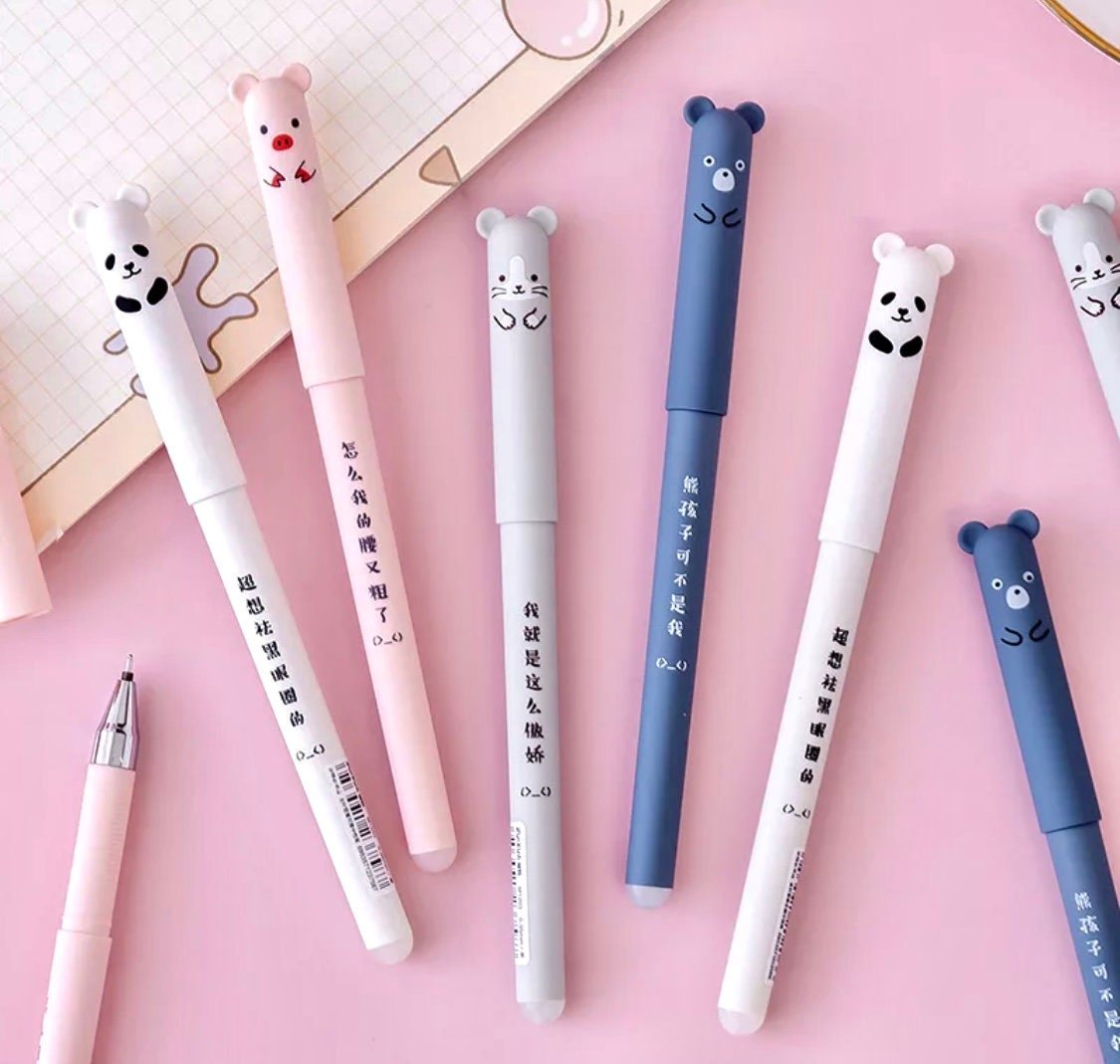 Erasable Gel Pen – Kawaii Stationery – Animal Blue Ink Gel Pen – School Supplies – Cute Stationery – Desk Supplies – Stationery Gift – Pens