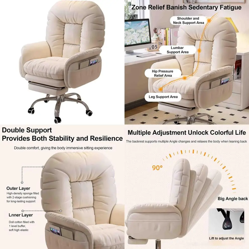 Here’s a rewritten product description based on the provided information: — Gaming and Home Office Chairs: These chairs are crafted with a focus on comfort and durability. Made from high-quality materials that ensure a soft and cozy feel, they are designed to provide a relaxing experience after a long day or while working from home. The chairs are built to last, with materials that are not easily broken. Comfortable Desk Chairs: This armchair-style desk chair offers a 360-degree swivel for versatile seating positions. The seat height is adjustable between 45-55cm, catering to various heights. It also features a reclining function that allows the backrest to be locked in any position between 90-130 degrees, providing comfort during breaks or after long hours of work and gaming. Strong Load Bearing: The office chair is equipped with a Class 3 gas lift certified by SGS, capable of supporting up to 500 lbs. Its 90-degree curved construction ensures stability and a balanced center of gravity, reducing the risk of slipping. The heavy-duty metal base provides great stability and mobility, while the wide seat offers a soft sitting experience with rolling caster wheels for added durability. Ergonomic Design: