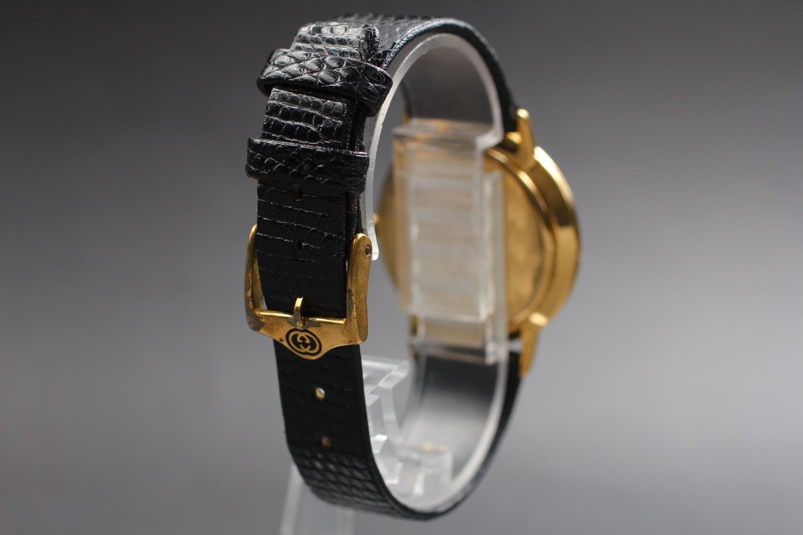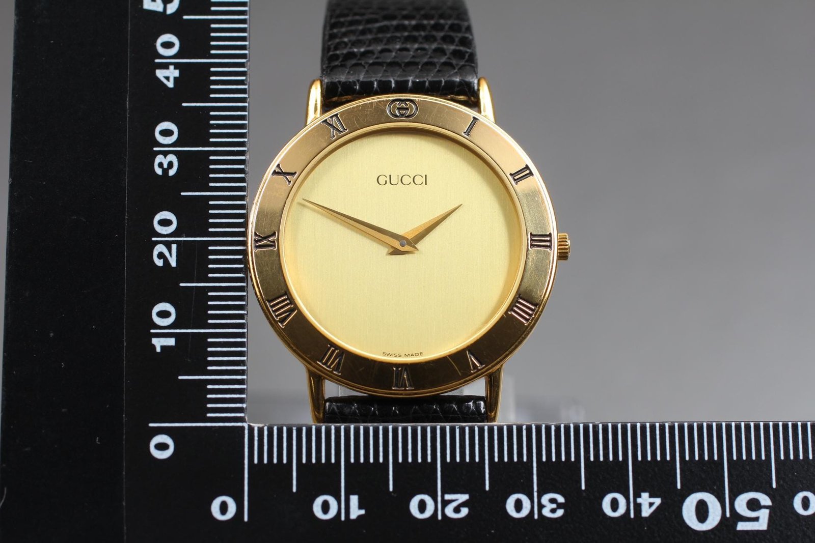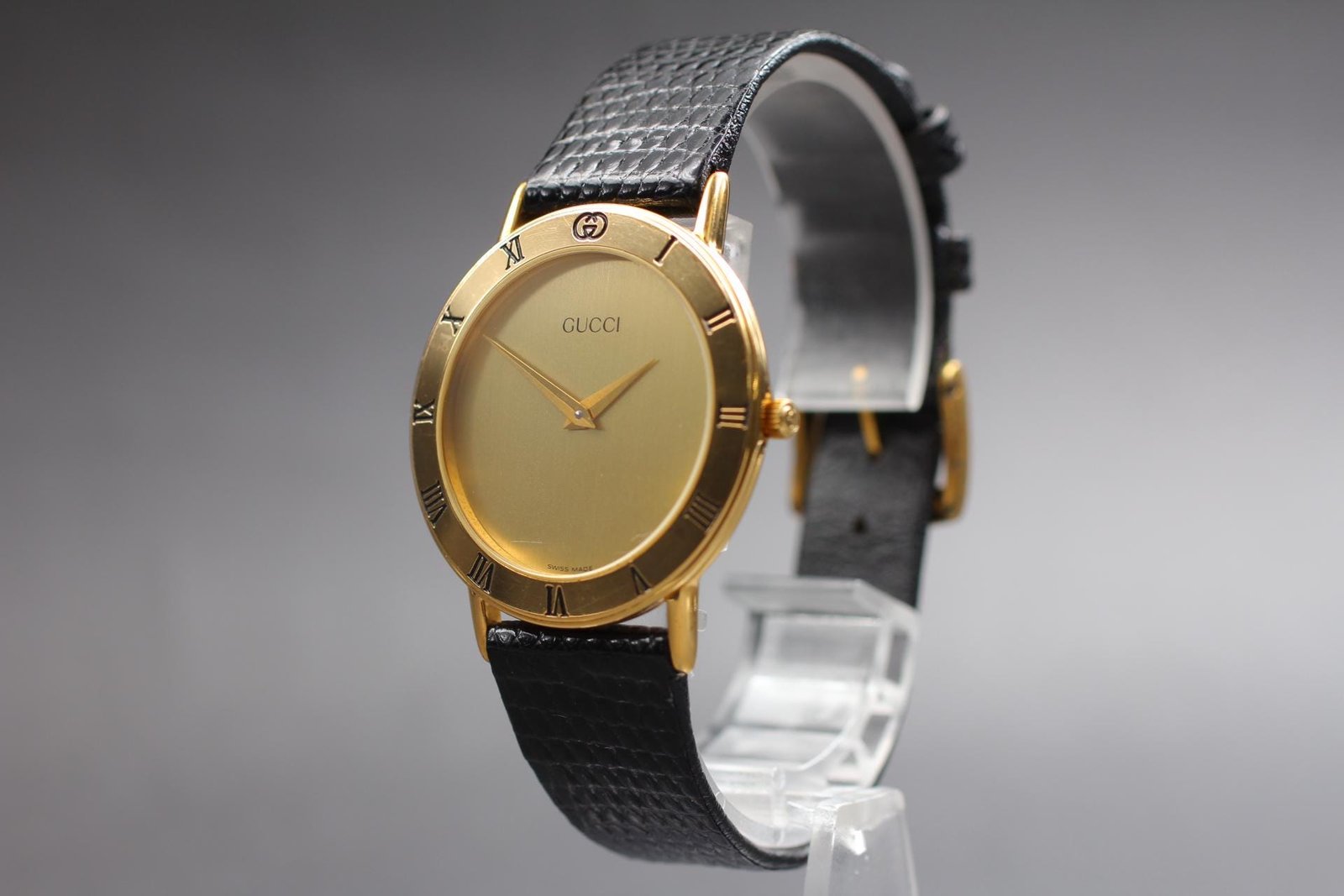 Exc+5 Gucci 3000.2.M 33mm Gold Dial Black Band Quartz Men's Watch